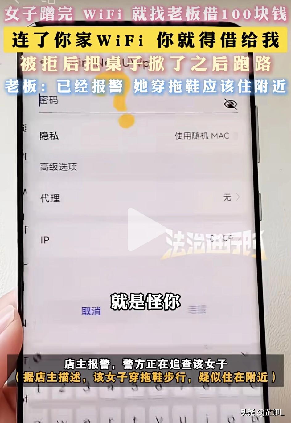 离了个大谱!江西女子连完店家WiFi就索要100元:我连你家网=怪你,必须借!网友:这理由,短剧都想不到! 2月27日,江西赣州,一陌生女子闯进曾女士店里,先问WiFi密码,连上后,就在门口玩了大概二十来分钟手机。 玩完转头就找店家借100块,理由直接震碎了三观: “我手机没钱,我连了你家WiFi,就是怪你,你就得借给我!” 被拒绝后,女子当场发疯,把桌上东西全扫地上,直接掀翻桌子。倒是一点也不傻,砸完了立马跑路。 店家老公追出去100多米,愣是让她跑掉了,这一身逃命的功夫也不知道怎么练出来的。 据店主描述,女子是穿拖鞋步行来的,大概率就住附近,目前警方正在追查。 网友辣评: “按她这逻辑,呼吸你家空气,是不是还得管她一辈子?” “这哪是成年人,分明是没断奶的巨婴,蛮横不讲理到极致!” “好心给你用WiFi,不是让你过来讹人、砸店的!” “这种人就该抓回来,该道歉道歉,该赔偿赔偿,别让好人寒心!” “纯纯巨婴,谁教出来的?必须给店家一个说法!” 出门在外,谁都不容易,但拿别人的好心当理所当然,还撒泼闹事,真的太过分! 希望警方尽快找到人,该赔的赔,该罚的罚! 素材来源:法治进行时,侵联删!