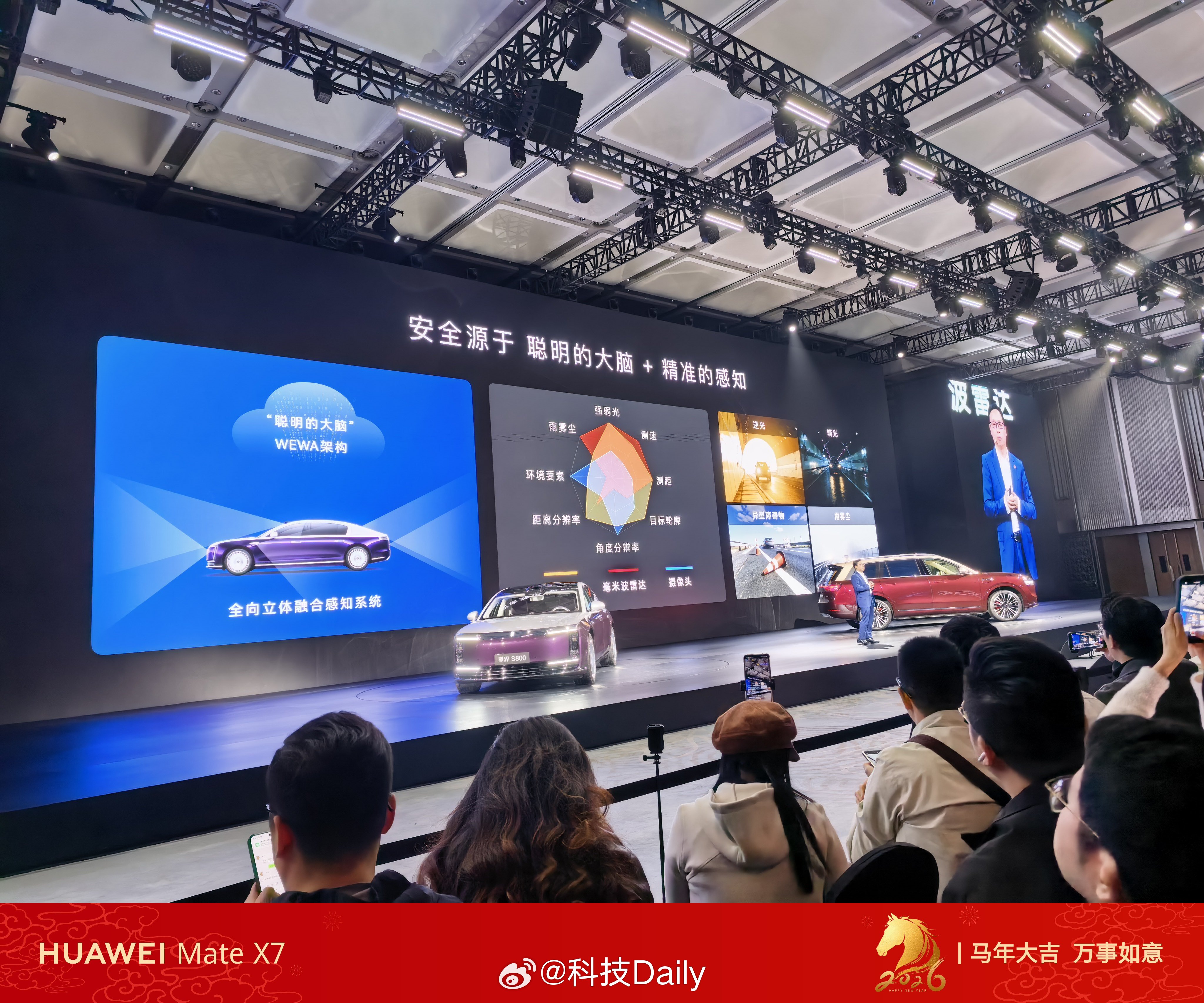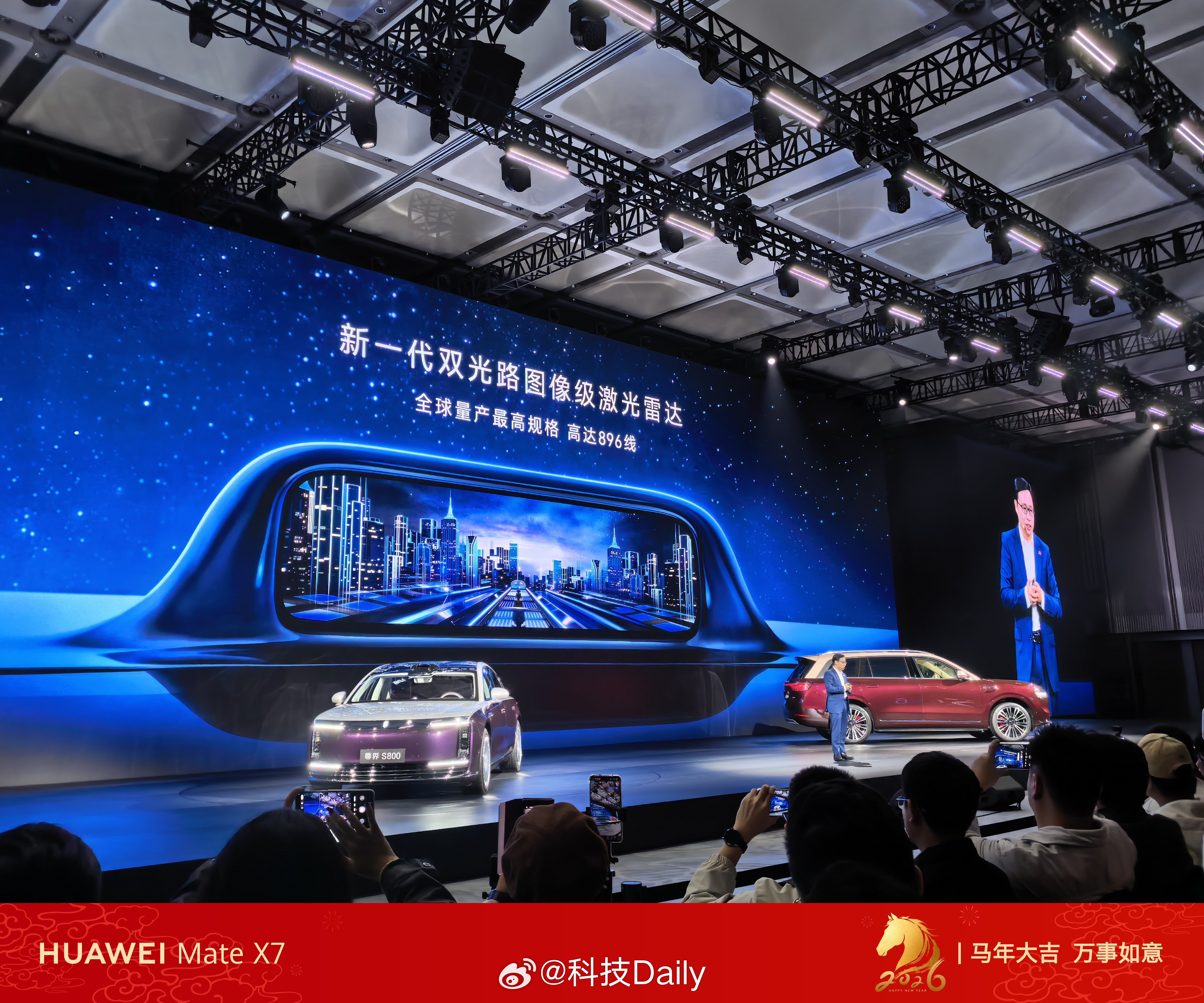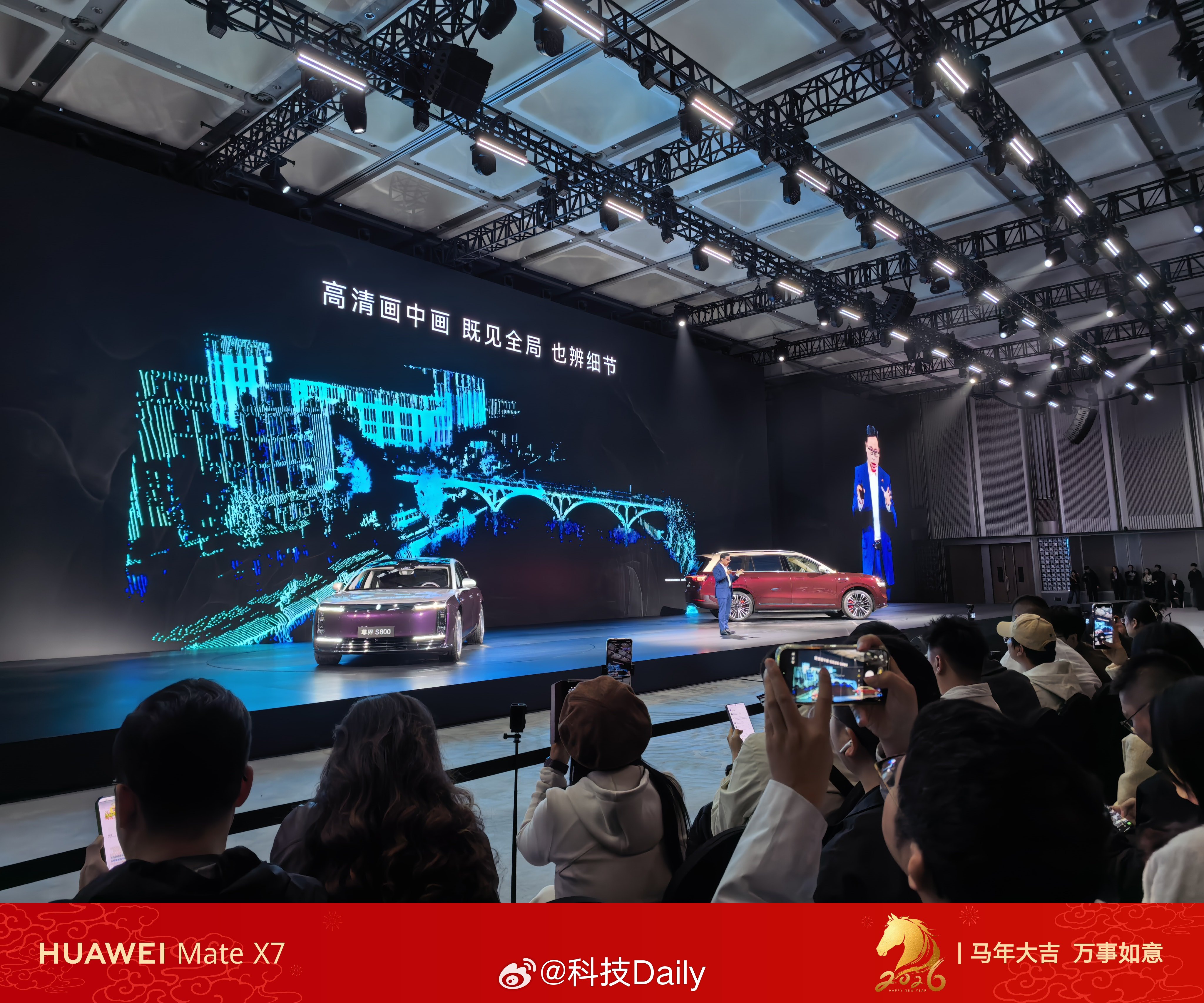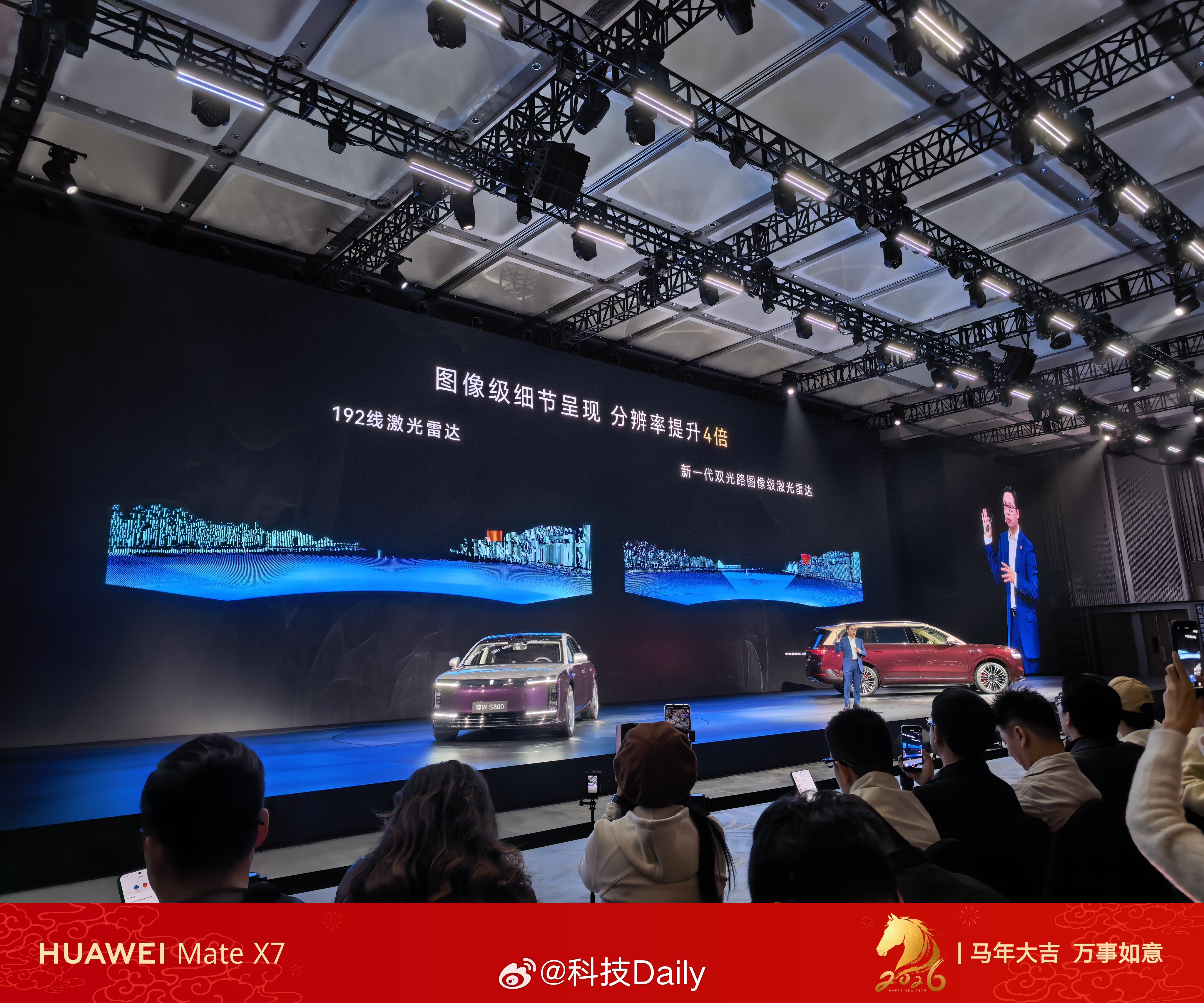全球量产最高规格高达896线,创新还得是华为,发布会现场和192线对比还是很明显的,主人带着狗子,小狗摇尾巴的状态都能实时看清,精准到离谱。