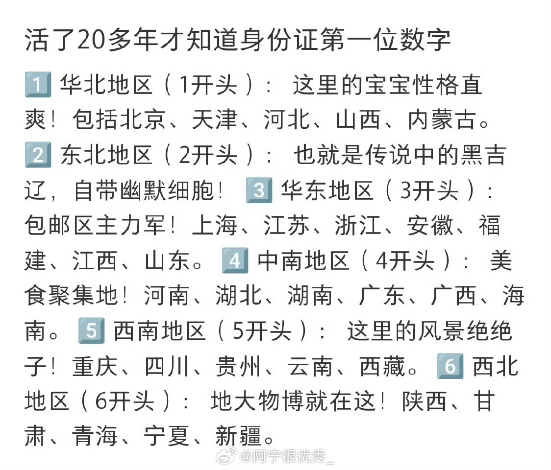 建议居民身份证去地址化一个冷知识,你知道身份证第一位数字代表啥呢!