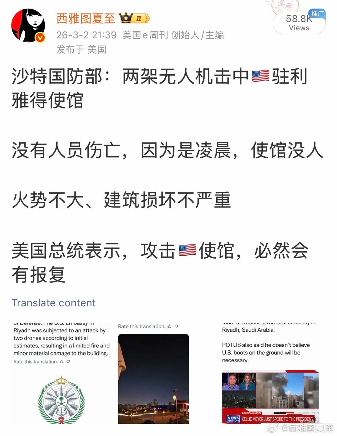 这是驻利雅得使馆后,美国在中东的外交设施第二起“无人机有关事件”,目前都没有人受伤