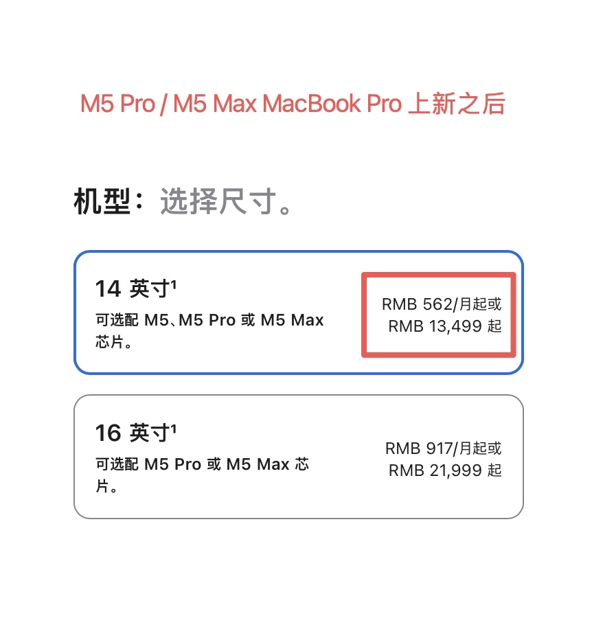 基础款 M5 MacBook Pro 14 寸在昨天晚上 M5 Pro/Max 发布后有个有趣的变动