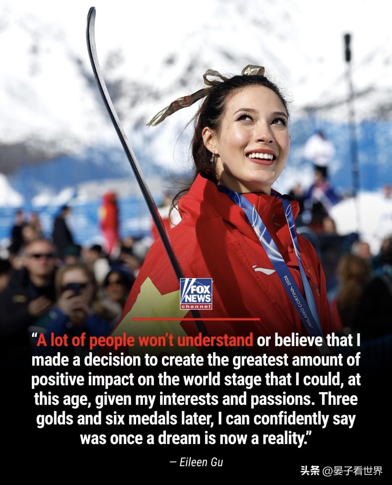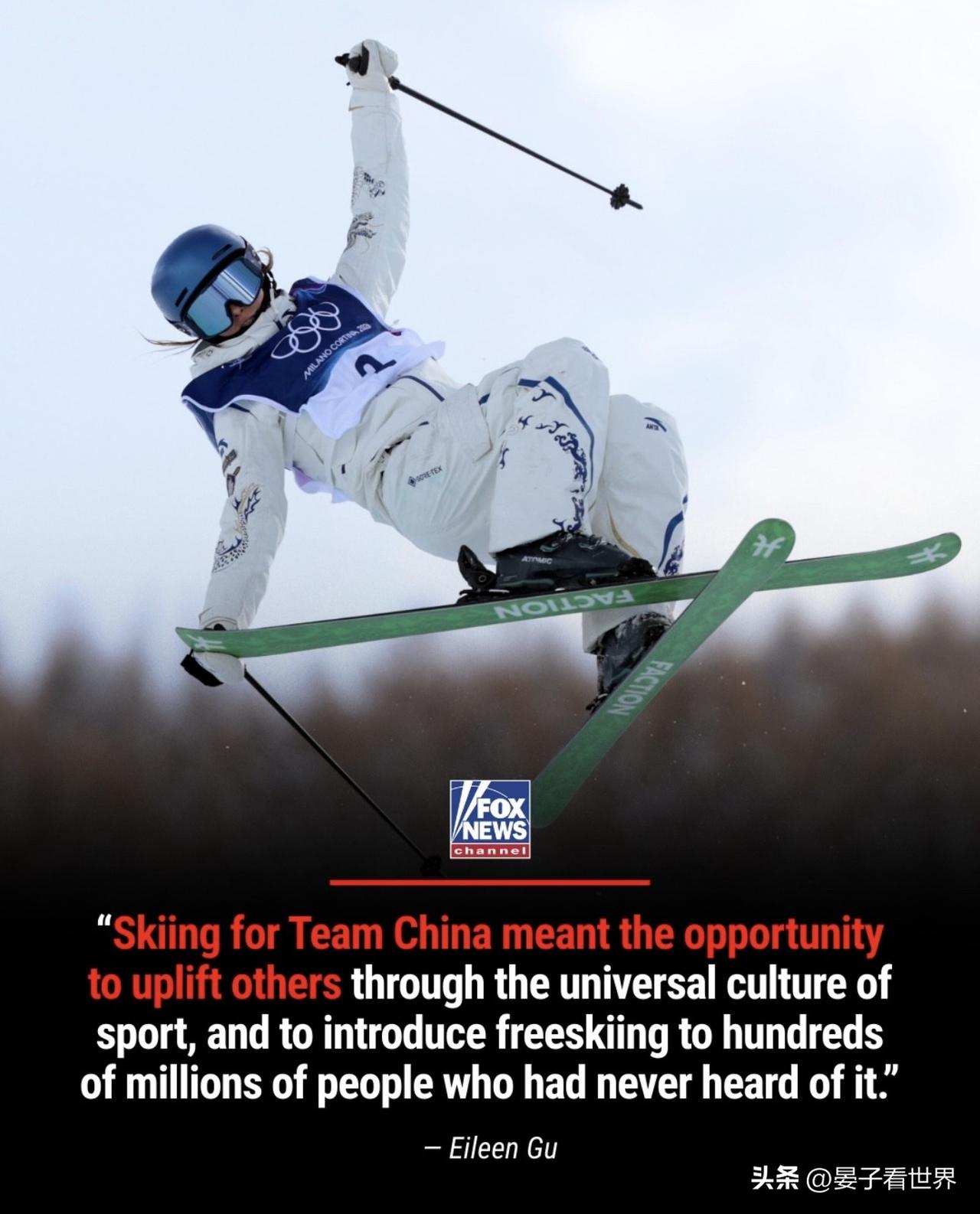 谷愛凌「堅持」的體育精神值得倡導!✊ foxnews PEAK DEFENSE: Eileen Gu is defending her decision to compete for China in the Olympics despite being born and raised in the U.S., saying not everyone will understand her choice - but insisting it allows her to make the "greatest" positive impact.