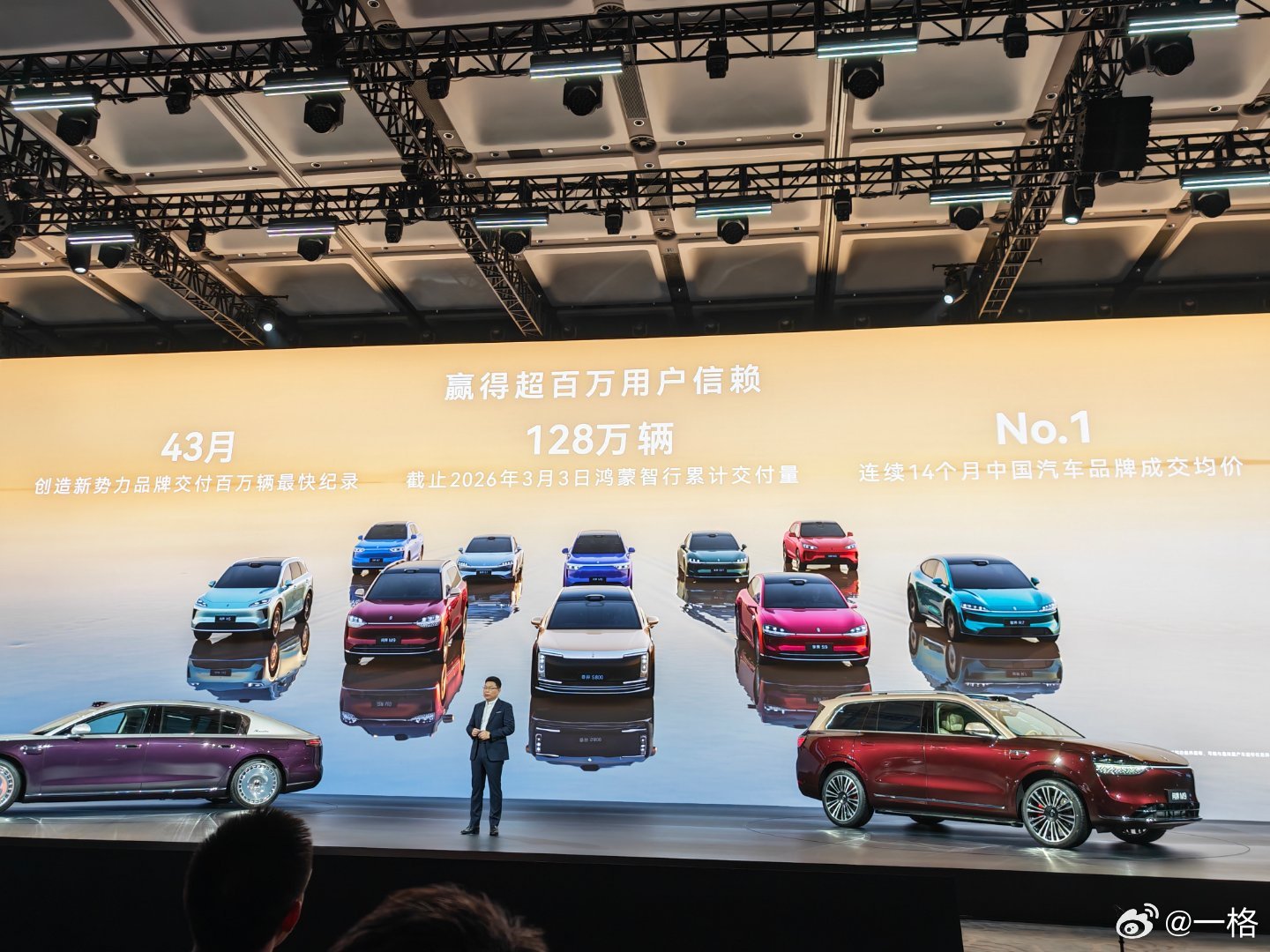 和余总距离十米不到发布会开始先秀战绩,鸿蒙智行累计交付 128 万辆了,且问界