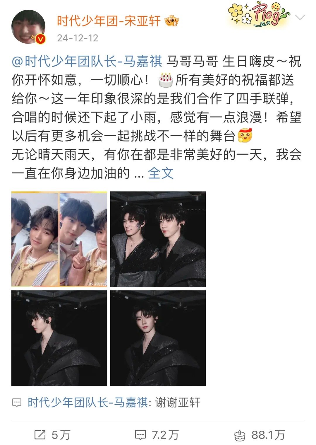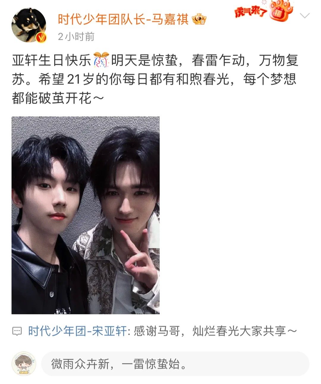 马嘉祺宋亚轩感情浓度 马背上长大的鱼马嘉祺宋亚轩的感情浓度真的好高,每一年两个人