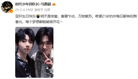 马嘉祺宋亚轩感情浓度 马背上长大的鱼马嘉祺宋亚轩的感情浓度真的好高,每一年两个人互送的生日祝福都看得我要流眼泪了。生日快乐小宋,就这样继续一起长大吧