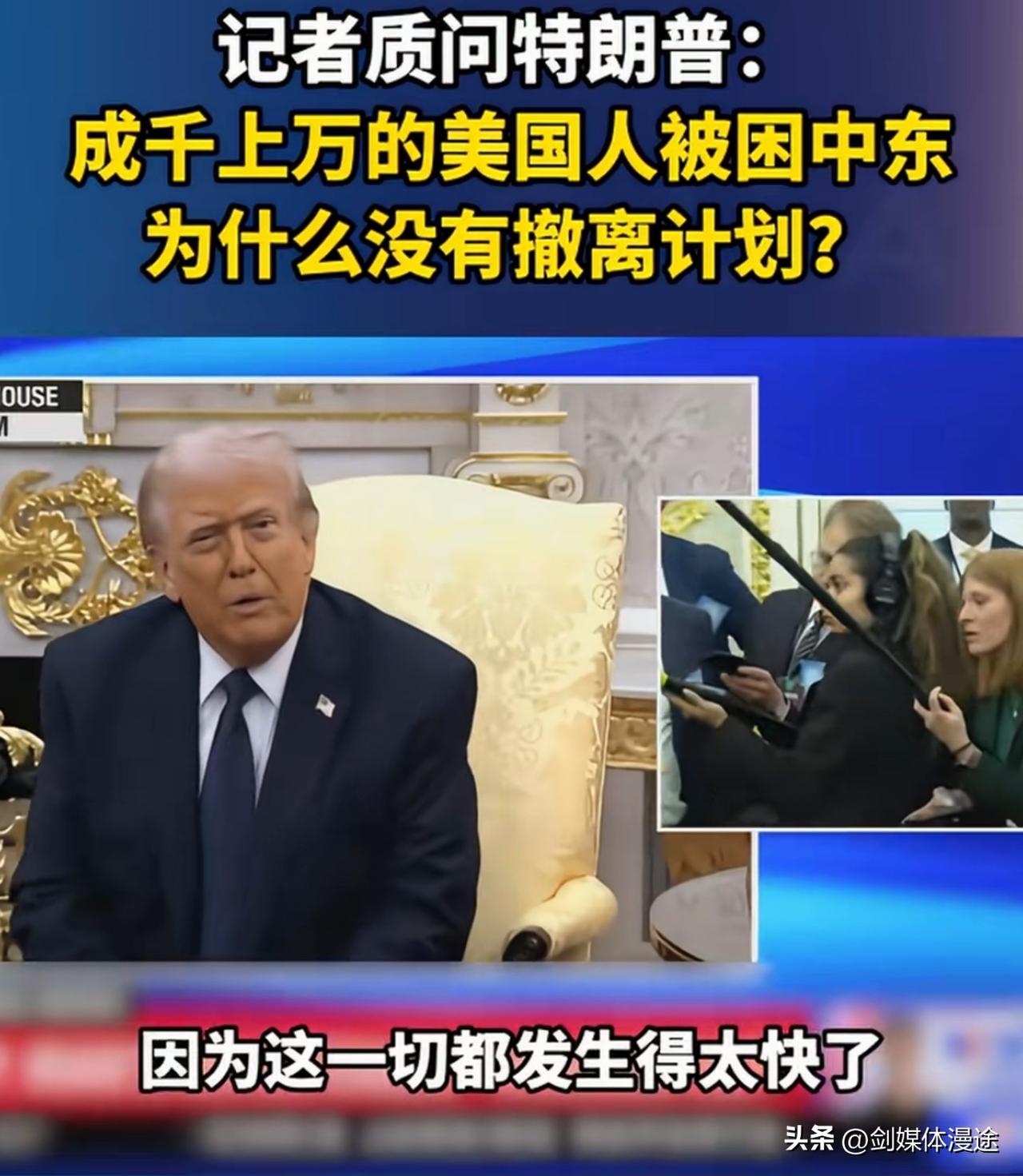 在白宫,当记者问 为什么美国政府没有及时援救 在中东的美国人呢?特朗普表示,战争来得太突然,来不及撤退美国人。 这里面透露出几个问题: 1:获得哈梅内伊当天开会及开会地点,美以间谍获取情报比较仓促,所以美国与以色列将“斩首”时间定在大白天,同时以色列与美国商谈斩首计划 及军事部署都是比较仓促的,而美国要力保“斩首计划”100% 完成。至于撤出中东美国人 ,美国政府暂时没有考虑在内! 2:美国在执行“斩首计划”后的考虑认为一旦哈梅内伊被杀害,伊朗政府会立刻瘫痪状态,面对群龙无首的伊朗政府会立刻投降 国内大乱。就此解散政府!但实际上美国政府失算了,伊朗一切有条不紊的进行之中,而且战斗意志越来越强,这是超出了特朗普的预判。 3: 美国与以色列在斩首前一定有过激烈的讨论计划,4 个小时完成战斗,如果伊朗会反击美以军队的话,顶多就是 4 天就可以结束战争,而美国与以色列将在 4 天之内军事强击伊朗,让伊朗溃不成军,结束战斗! 但特朗普又失算了,伊朗这么能打,伊朗民众如此团结,而且伊朗整个战局是由伊朗革命卫队掌控着,与伊朗政府没有关系。所以革命卫队就是卯足了劲的攻击美以军队!为此特朗普只好宣称战争将持续 4~5 周时间!但能结束吗?伊朗做好了长期消耗战的准备!美国准备好了吗? 最后特朗普也表态,如今战事胶灼之中,要想撤出美国民众难度很大,目前中东国家的机场 包括迪拜等机场均被伊朗导弹与无人机攻击,许多军事基地机场也被伊朗炸毁了,根本无法撤离美国民众!
