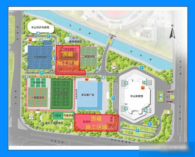施工区域位于全民健身广场内,施工期间将进行全封闭围蔽。
