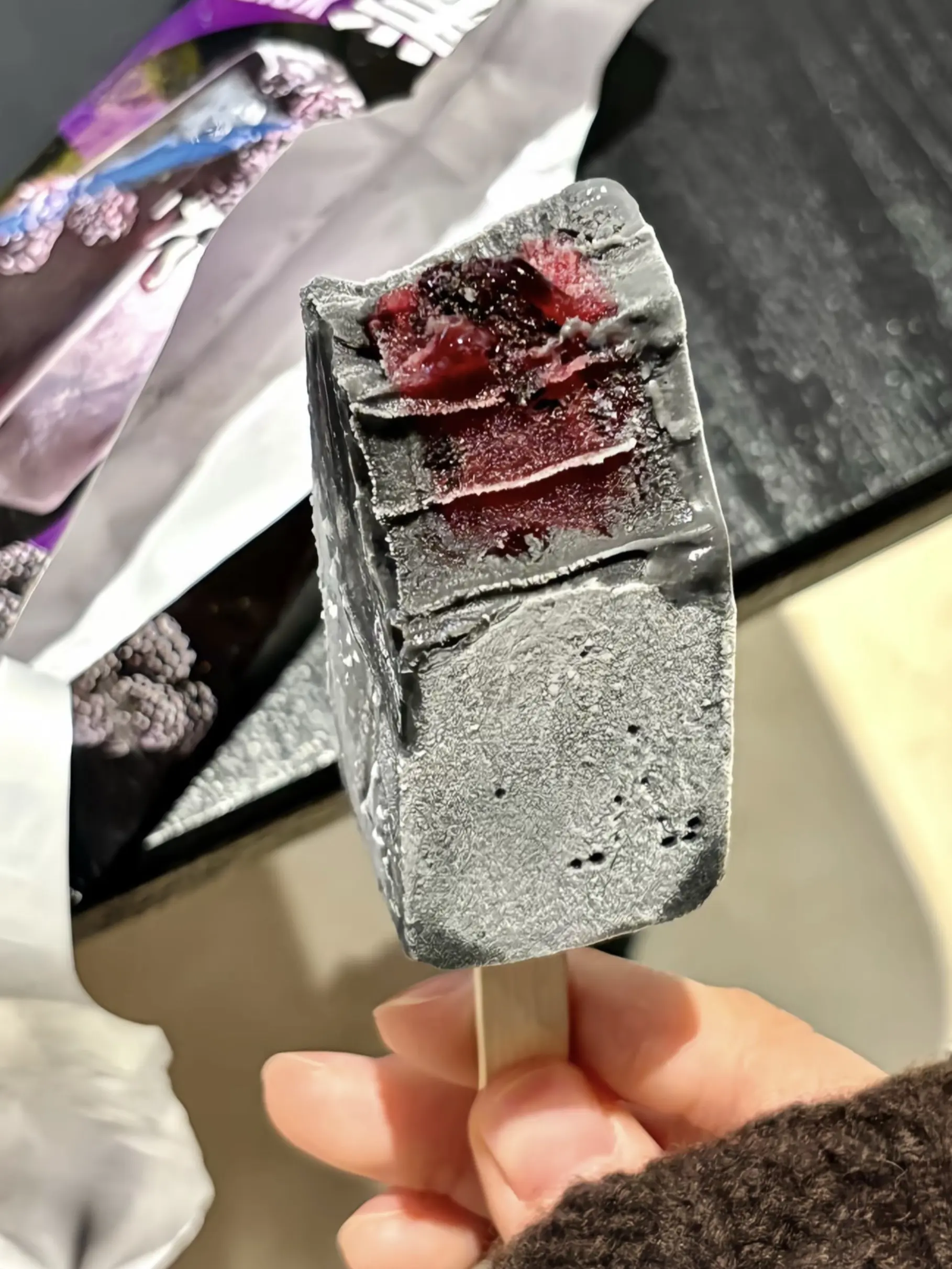 上次吃黑色雪糕还是黑芝麻味的,这次朋友买的桑葚味也好好吃!