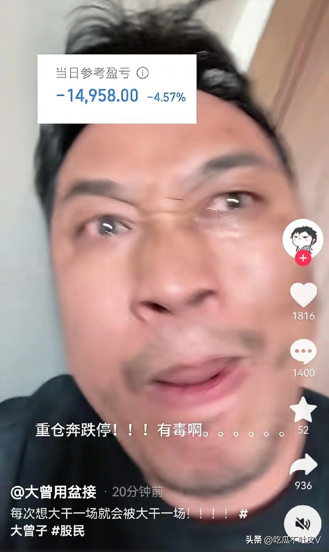 哈哈哈!3 月 4 日大 A 终于收盘了! 这两天的大 A 恐怖到什么程度? 连大曾子都直呼太可怕了,重仓奔跌停,这简直就是有毒啊!其实这行情你是重仓也好,分仓也罢,最后亏得效果都是差不多的,这种神仙行情啥时候才能结束啊? 今天大曾子的眼药水看来滴得真不少 账户又下 30 了 估计越走越远了[捂脸]大曾子