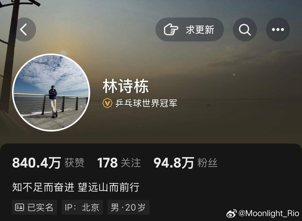 林诗栋更换抖音头像更新个性签名:知不足而奋进 望远山而前行