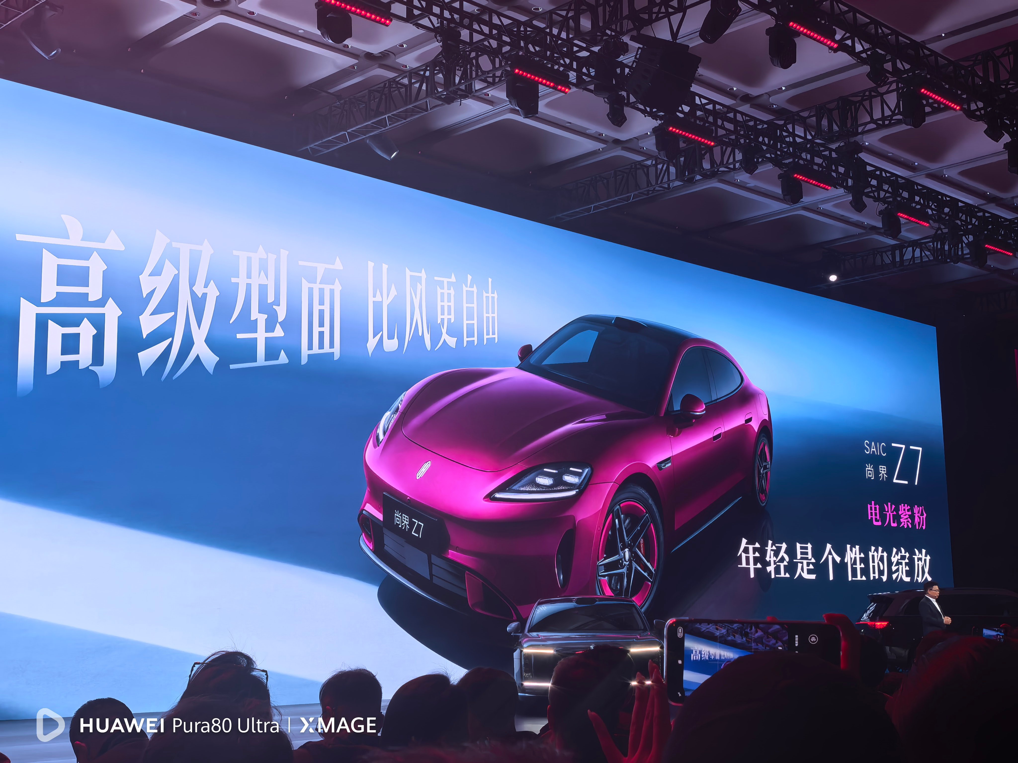 尚界Z7电光紫粉 尚界Z7这个紫粉色有点帅呀,定位是风尚科技轿跑,非常年轻时尚,