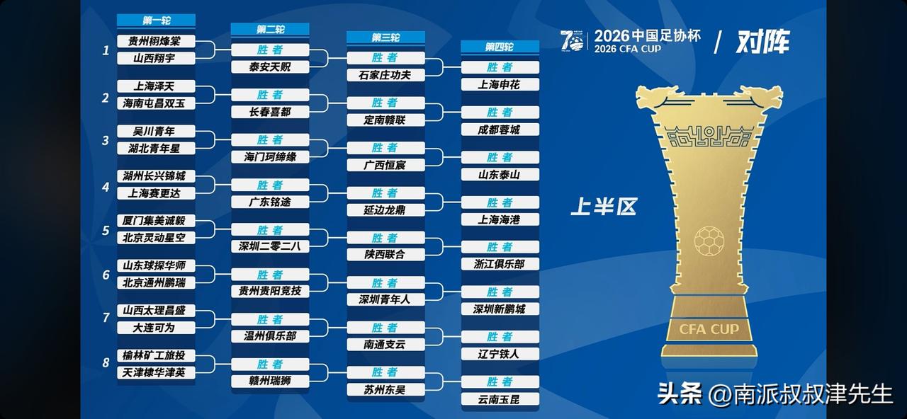 中国足协杯抽签完成,上半区强队集中,下半区卫冕冠军能否一路长虹足协杯排名 足协杯