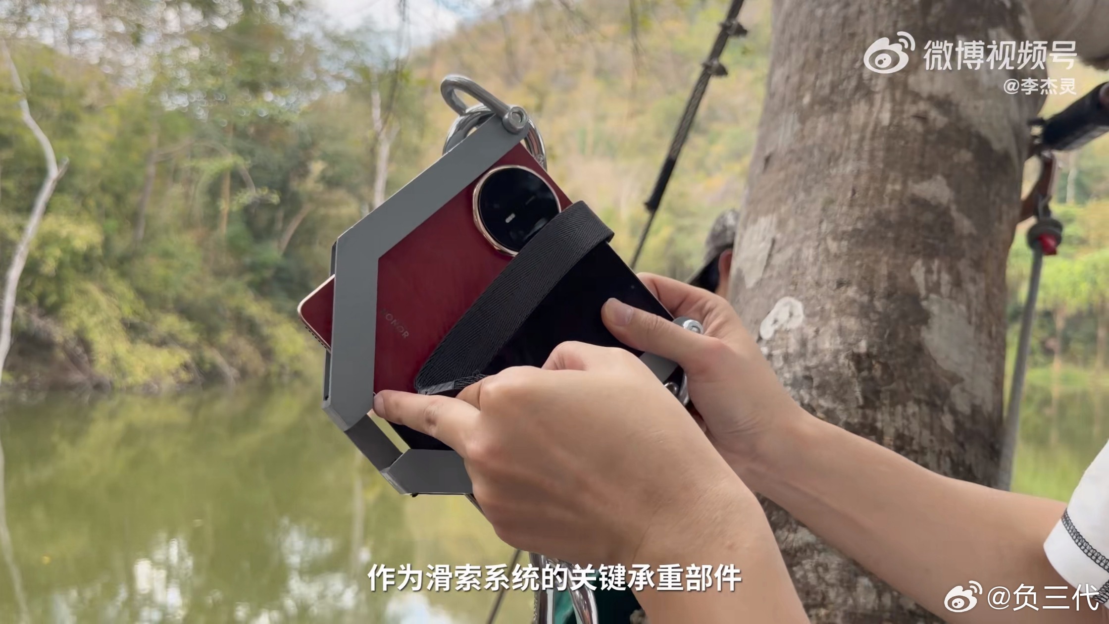 荣耀MagicV6带飞李杰灵荣耀Magic V6的铰链强度属实令人吃惊。李杰灵在泰国用Magic V6作为滑索上的承重件,且他本人重70kg,最终滑索挑战成功,人稳稳当当的过去了一点摇晃都没有。大家都知道荣耀Magic V6很轻薄仅8.75mm厚,但轻薄并不意味着脆弱