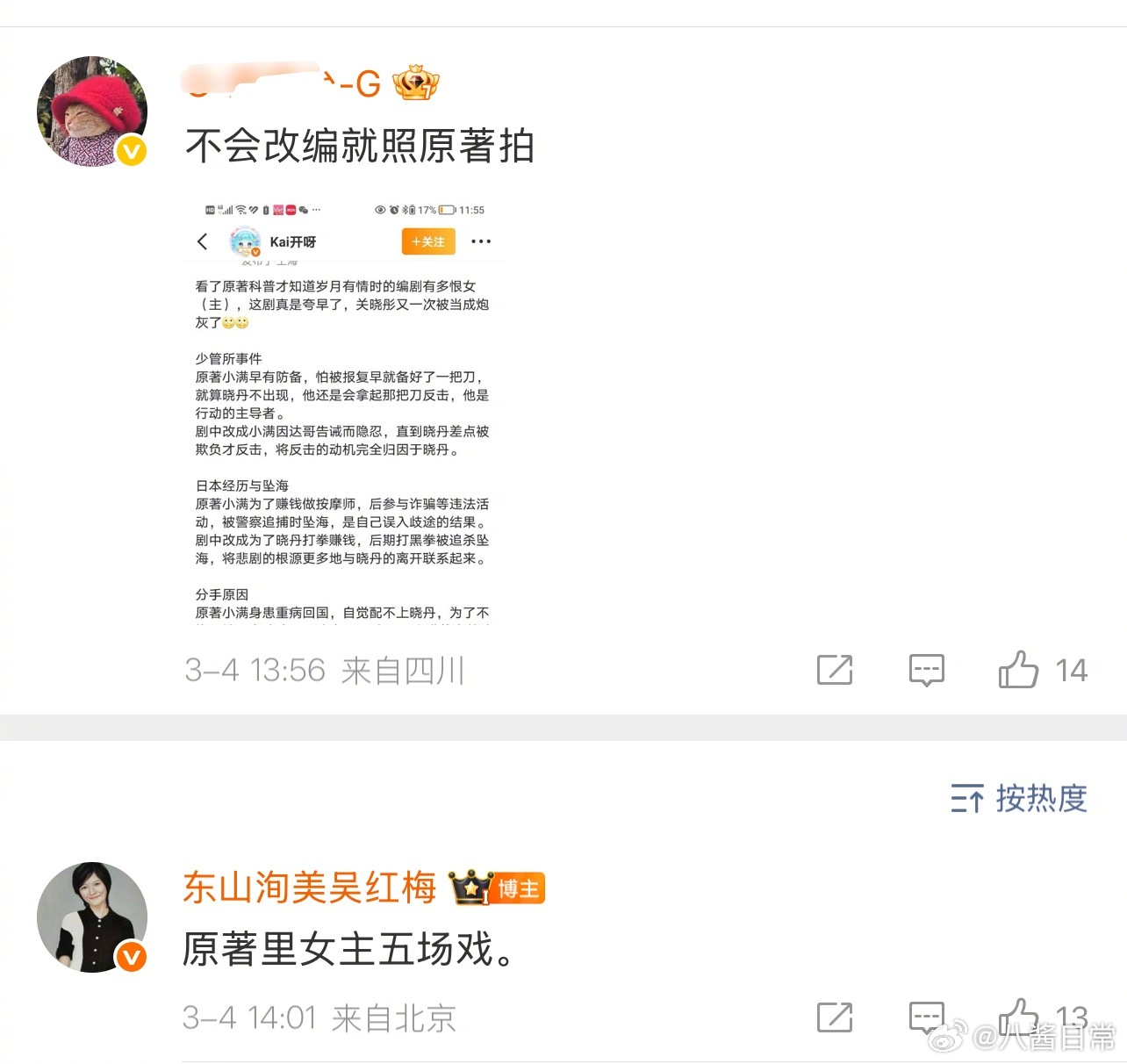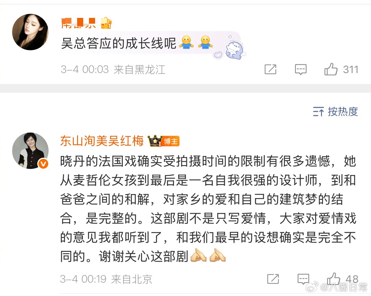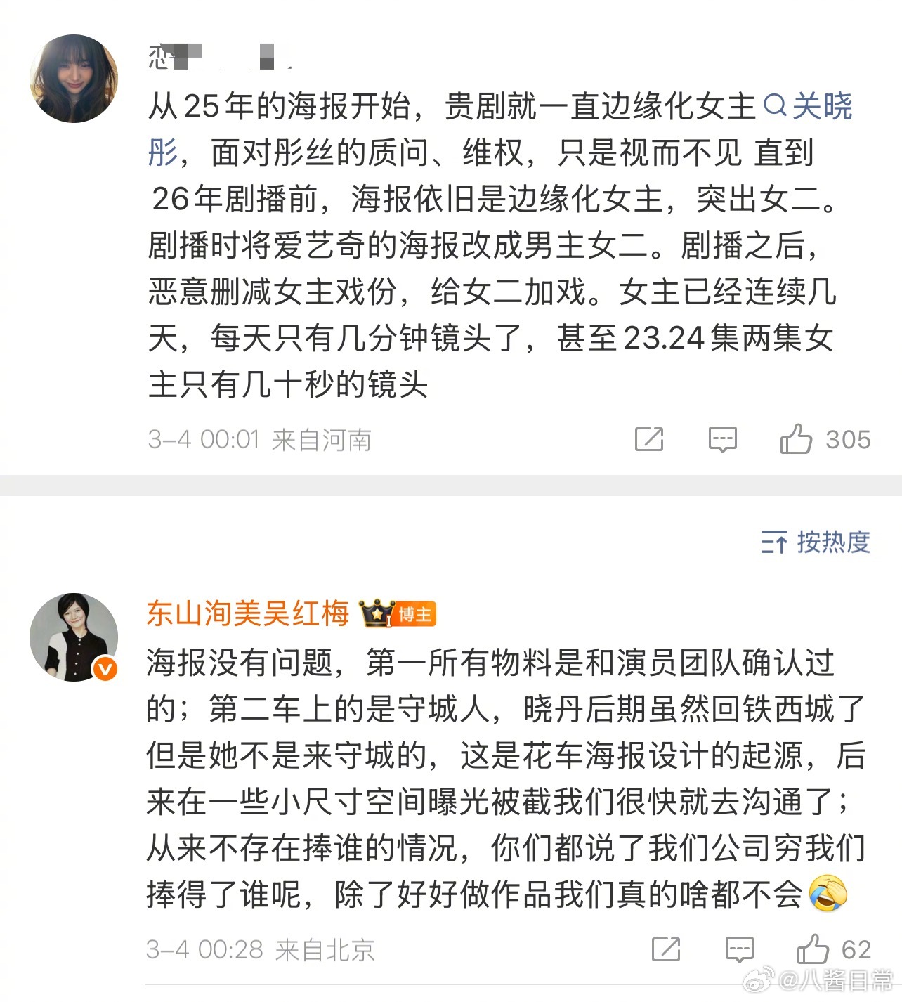 关晓彤粉丝说《岁月有情时》关晓彤戏份少,制片人回应:原著里女主五场戏