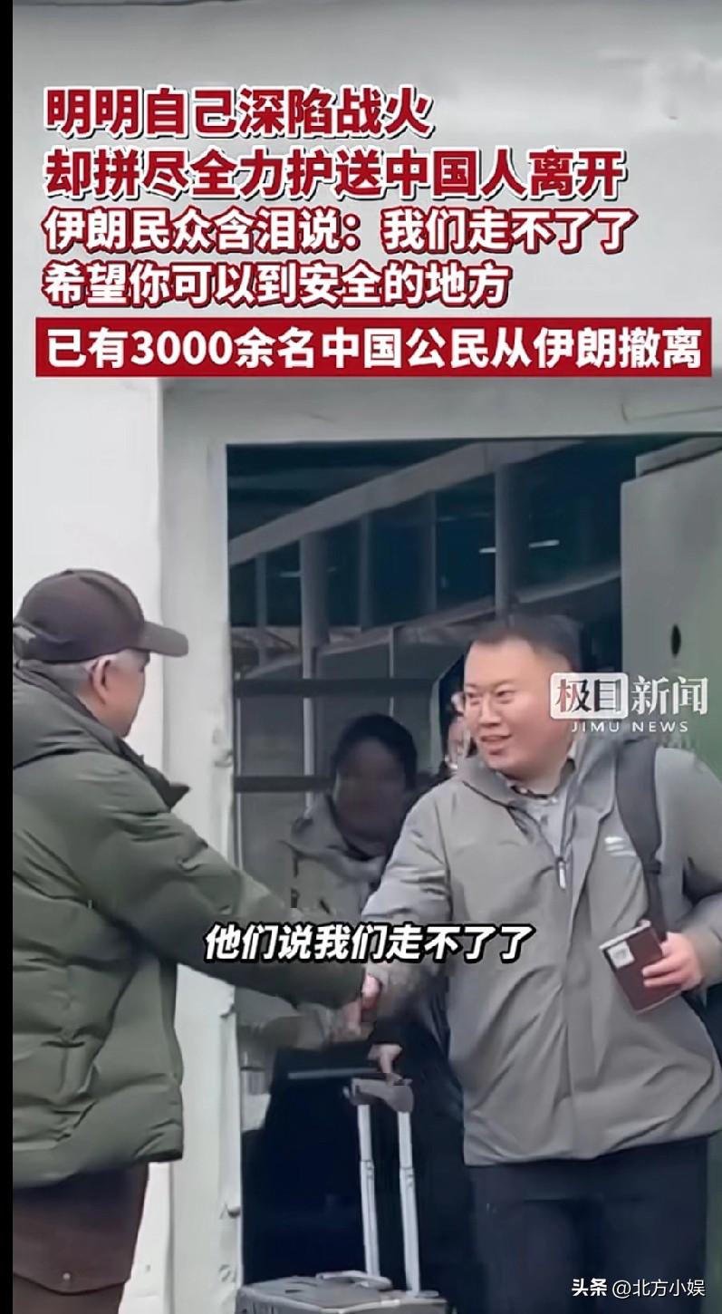今天看到一个新闻,让人心酸。中国民众王先生在撤离途中,遭遇了持续轰炸,信号终端,在他最无助的时刻,伊朗当地的民众主动伸出援手,帮忙联系车辆,尽全力护送他安全离开。临别时,帮助他的伊朗民众,与王先生护手,眼里也充满了羡慕。羡慕王先生可以离开,可以去安全的地方。 这份跨越国界的善意令人动容,明明自己早已深陷战火,却仍拼尽全力,护送中国人离开。 愿战火早日平息,愿和平照亮每一个生命。 愿硝烟早日散尽,愿和平降临每一片土地,愿每一个生命都被温柔照亮。