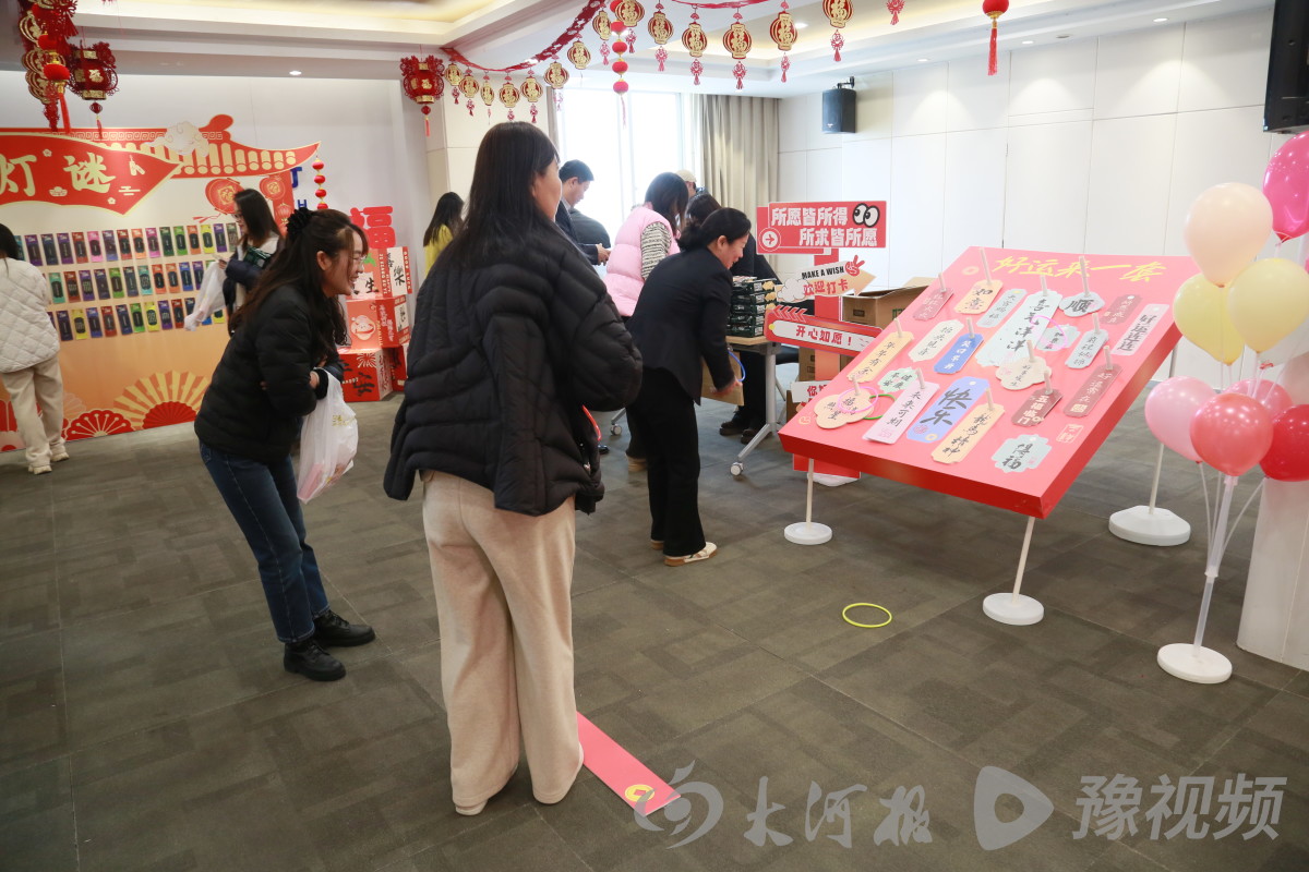 分行会场紧扣“趣味、互动、团圆”的主题,工会精心设置了趣味灯谜区、夹元宵游戏区与套圈游戏区三大互动区域,兼顾知识性与娱乐性,让员工在轻松愉悦的氛围中感受传统文化的魅力。趣味灯谜区人头攒动,员工们三五成群,驻足沉思、热烈讨论,不时传出阵阵欢声笑语。成功猜中谜底的员工手持奖品,脸上洋溢着满满的成就感;夹元宵游戏区同样热闹非凡,考验着员工的手眼协调能力。参赛员工手持特制长筷,小心翼翼地将象征着团圆与幸福的“元宵”(乒乓球)夹至盒中;套圈游戏区前,大家瞄准目标、果断出手,小小的套圈不仅套住了节日的欢乐,更拉近了员工之间的距离。同时,各支行也积极响应,纷纷组织起别开生面的元宵节主题活动,项目涵盖趣味猜灯谜、温馨包汤圆以及独具匠心的金