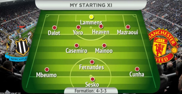 曼晚预测曼联vs纽卡首发:拉门斯;马兹拉维、海文、约罗、达洛特;梅努、卡塞米罗、B费;库尼亚、舍什科、姆伯莫