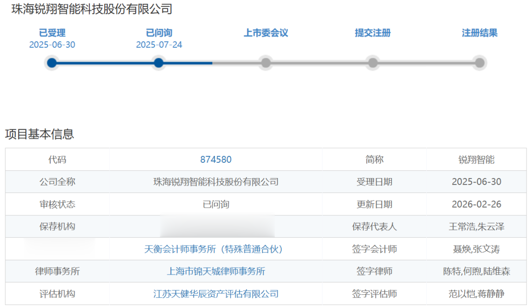 3月4日,北交所上市委举行2026年第18次审议会议,锐翔智能IPO审核顺利通过。此次发行人IPO保荐机构为国泰海通证券,会所为天衡,律所为锦天城。