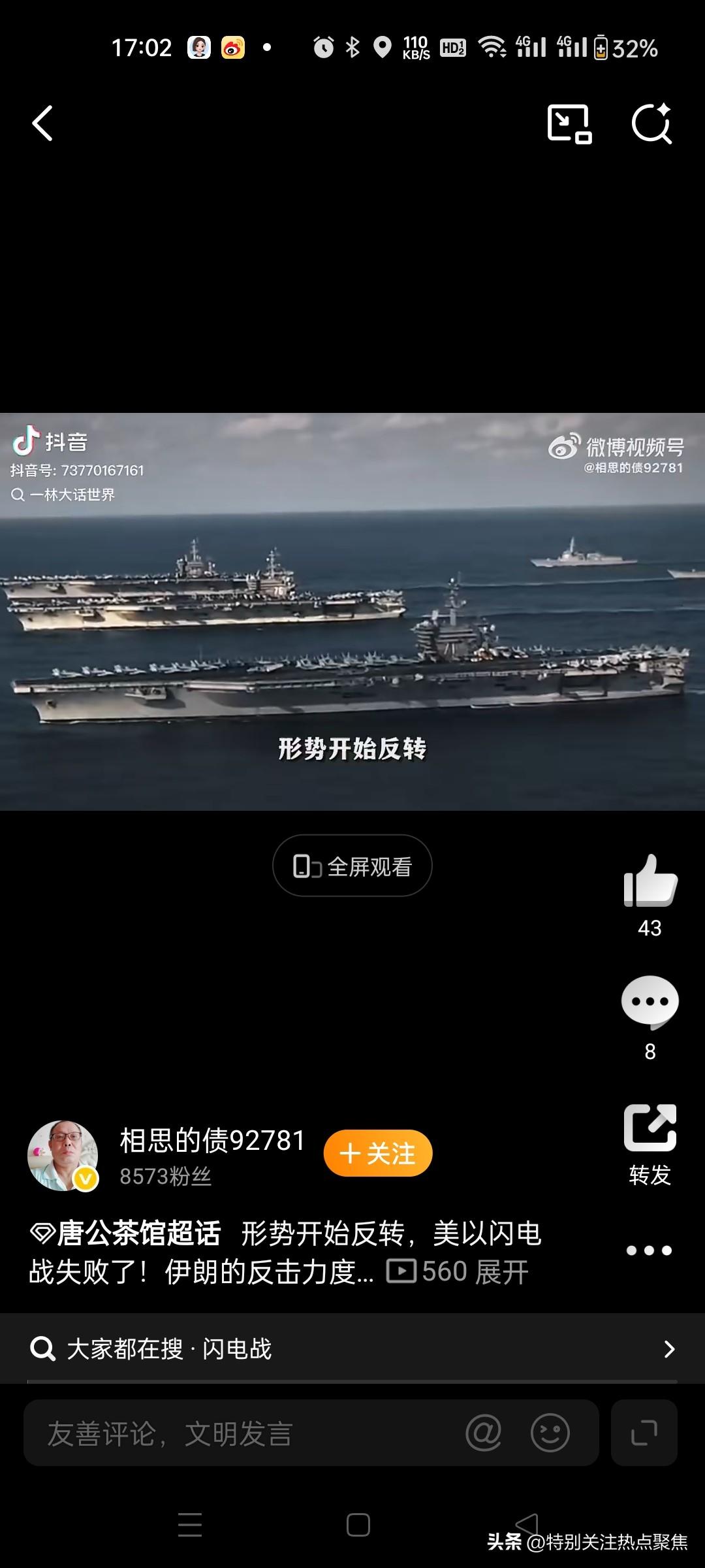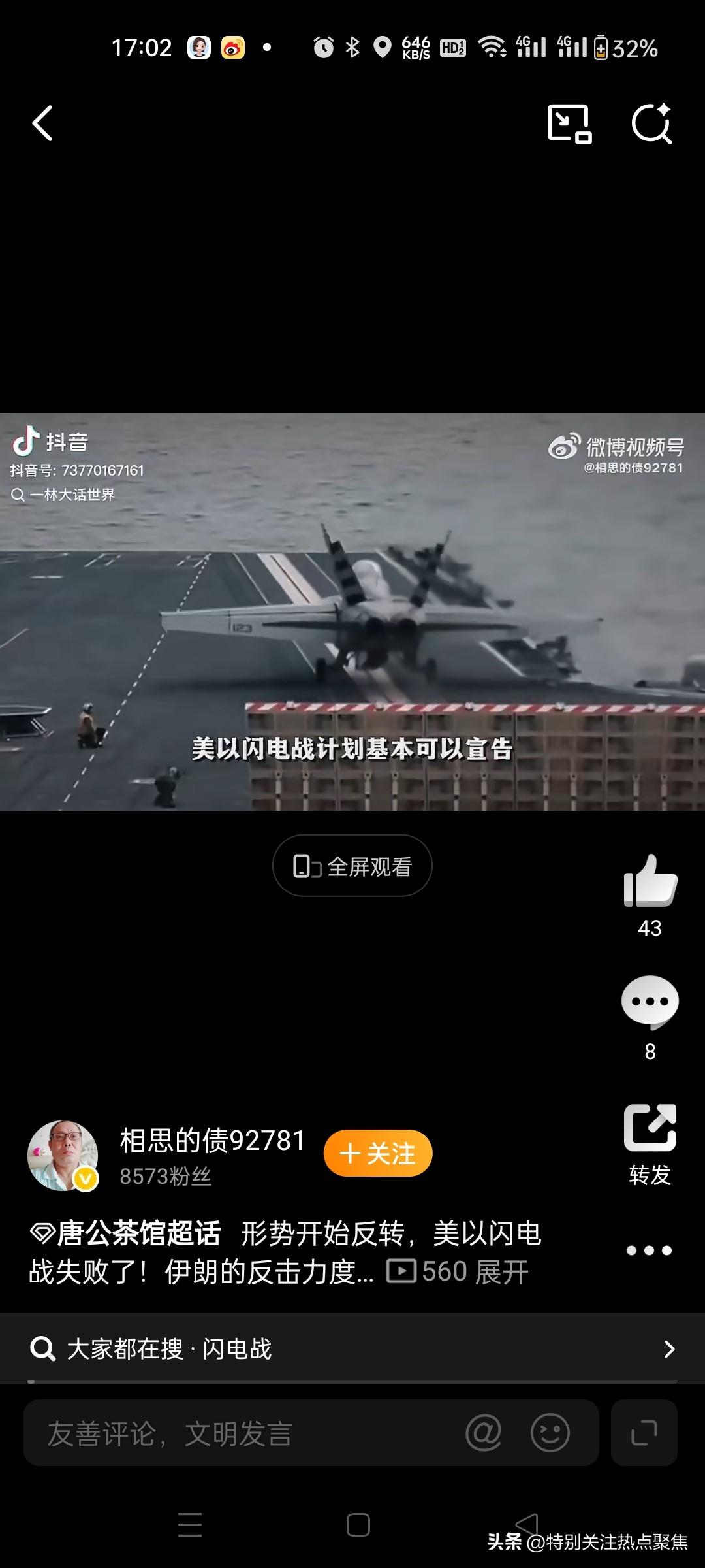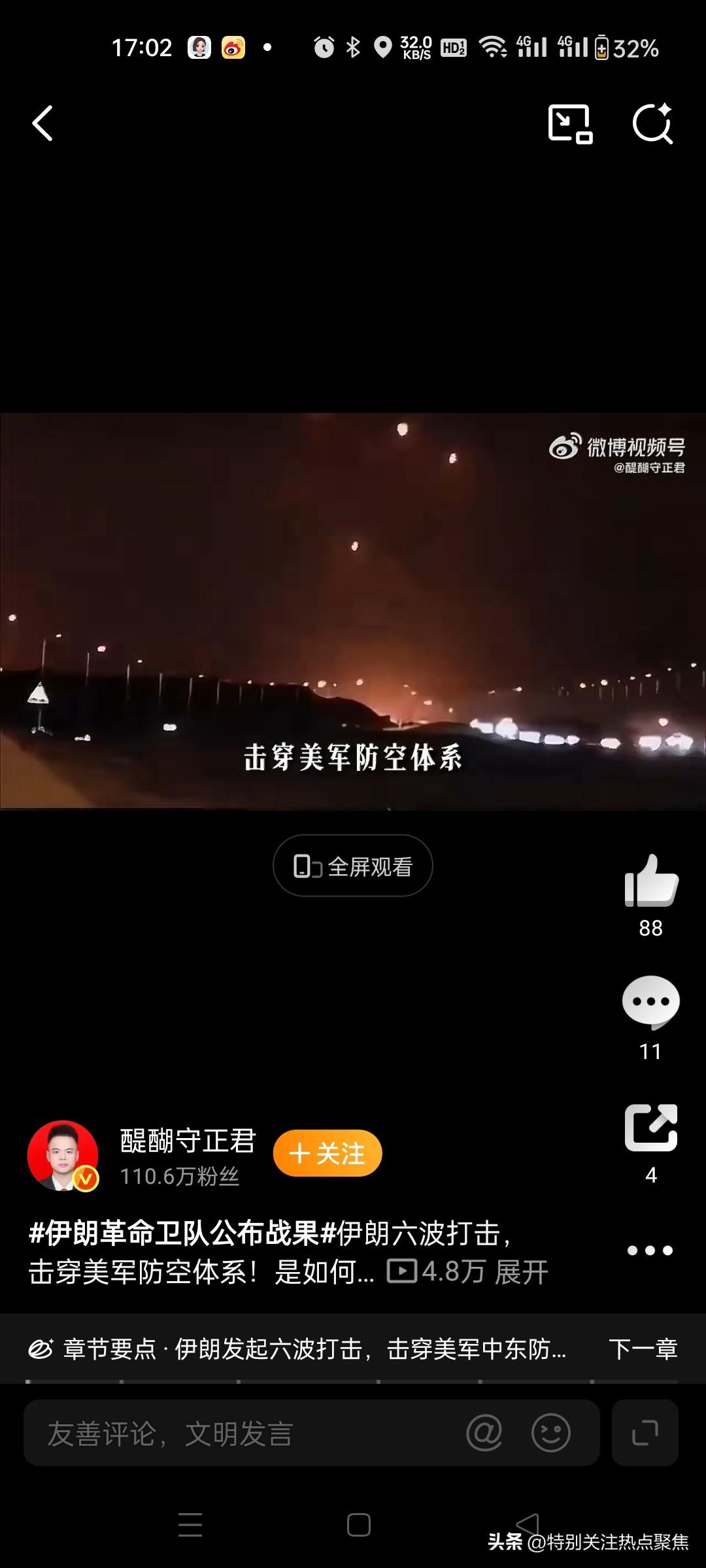 伊朗全面开战,四面出击,战果辉煌,伊朗伊斯兰革命卫队直接发动多轮攻击,覆盖中东8国14个美军核心设施,后续扩大至27个基地,打破以往依赖代理武装的模式。 美以惹下大麻烦,特朗普和以色列内塔尼亚胡麻烦大了。 首次对美军中东基地实施全域同步打击:伊朗伊斯兰革命卫队直接发动多轮攻击,覆盖中东8国14个美军核心设施,后续扩大至27个基地,打破以往依赖代理武装的模式。 摧毁关键战略设施:成功击毁位于卡塔尔乌代德空军基地的AN/FPS-132远程预警雷达,该雷达探测距离达5000公里,是美军中东反导系统的核心“眼睛”,损毁后三年内难以重建。 高超音速导弹实战突破:使用“法塔赫”系列高超音速导弹(末端速度12–16马赫)突防,精准打击以色列索雷克海水淡化厂等高价值民用基础设施,造成严重功能瘫痪。 电子战与蜂群战术结合破防:通过“幻影五”电子战系统干扰GPS与通信,配合低成本无人机消耗拦截弹,为高超音速导弹创造突防窗口,压缩美军拦截反应时间至60秒内。 打击以军指挥中枢与军工体系:多枚导弹命中以色列国防军总司令部(哈基里亚基地)、特拉维夫国防工业园区、海法港海军基地及多个空军基地,重创其军事指挥与军工生产能力。 宣称重大人员杀伤:伊朗方面称反击已造成约560名美军伤亡,美方仅承认极少数伤亡,数据存在显著出入。 封锁霍尔木兹海峡威慑全球能源市场:宣布关闭海峡,掌控全球五分之一原油运输通道,形成战略性能源反制杠杆。 维持指挥链完整并展示政权韧性:在美以“斩首行动”下,最高领袖哈梅内伊、总统及革命卫队高层均未被击毙,四级权力继承机制确保指挥不中断。 注:部分战果如击落B-2轰炸机、摧毁内盖夫核研究中心等尚未获独立证实,存在信息战成分风险。