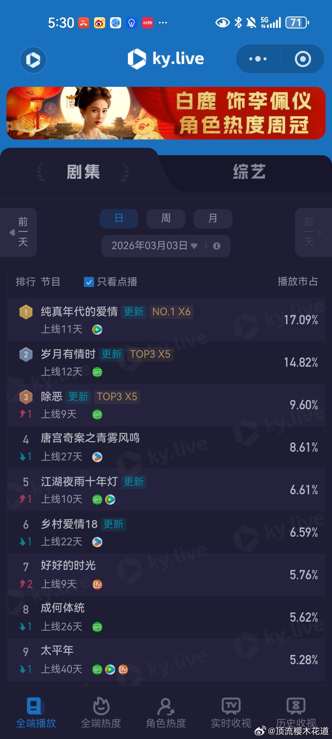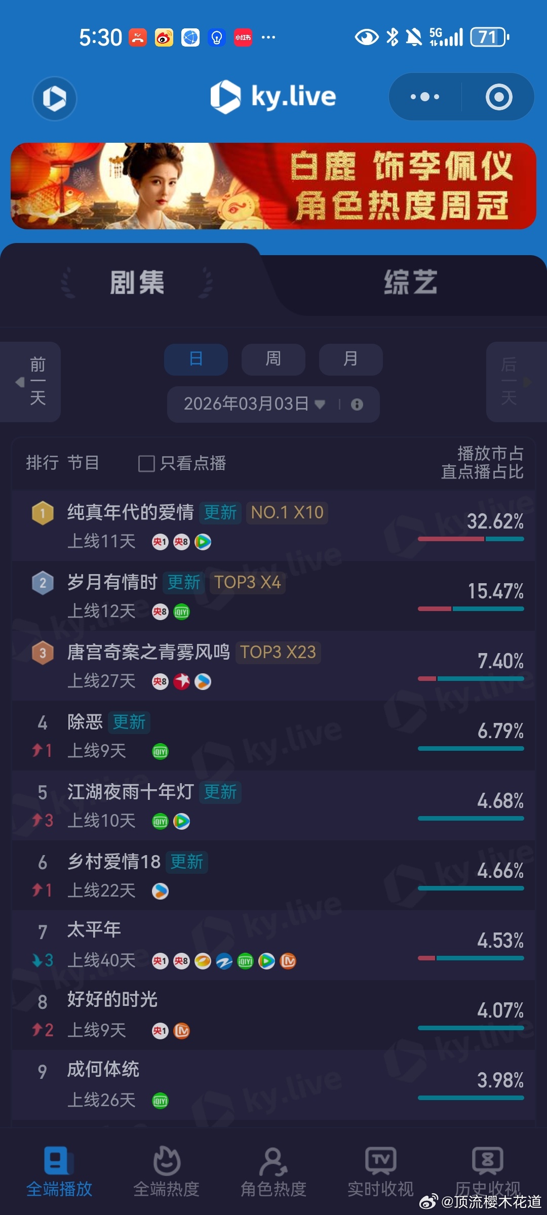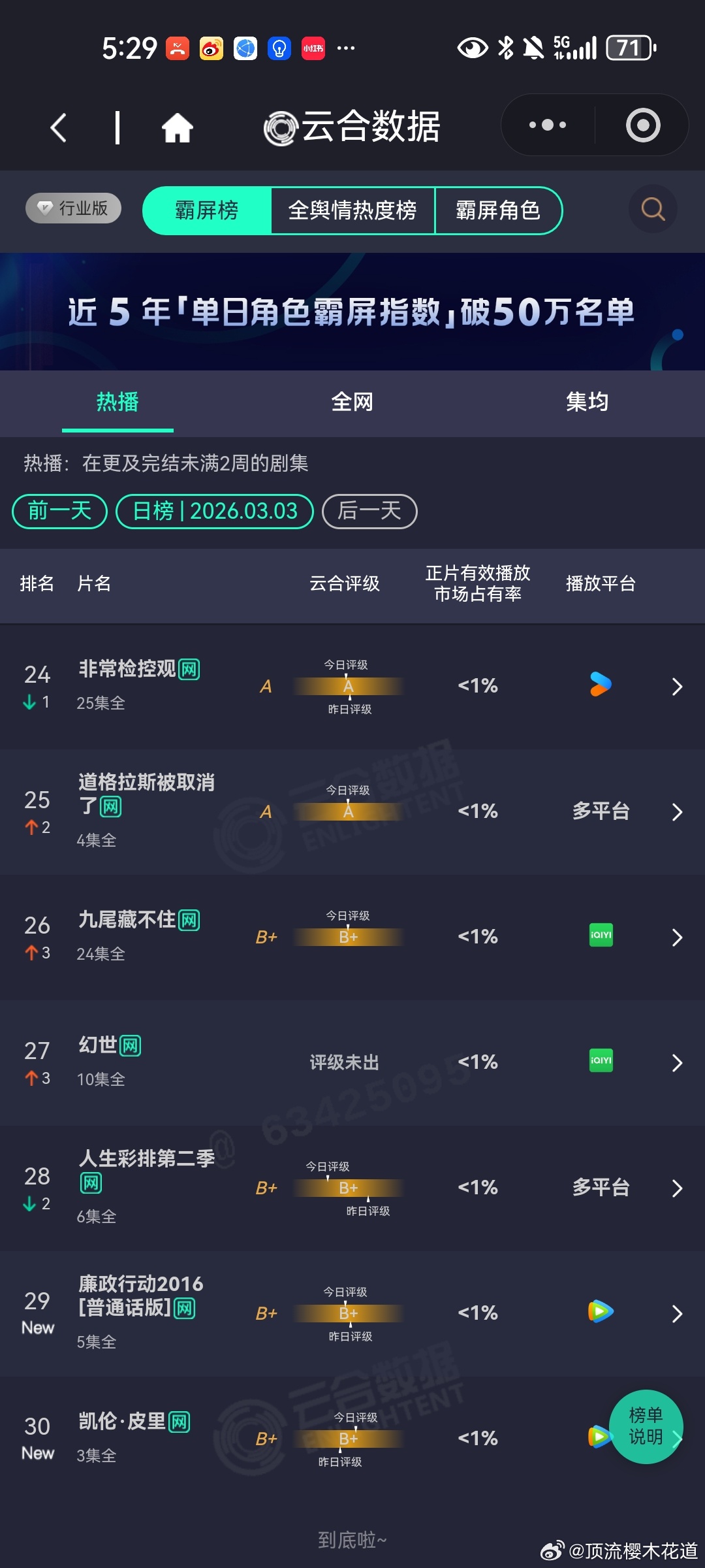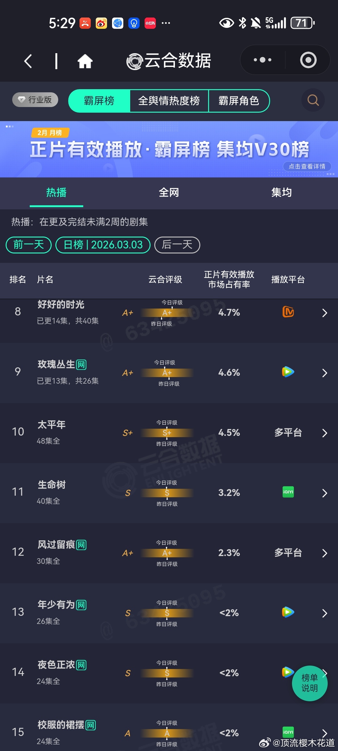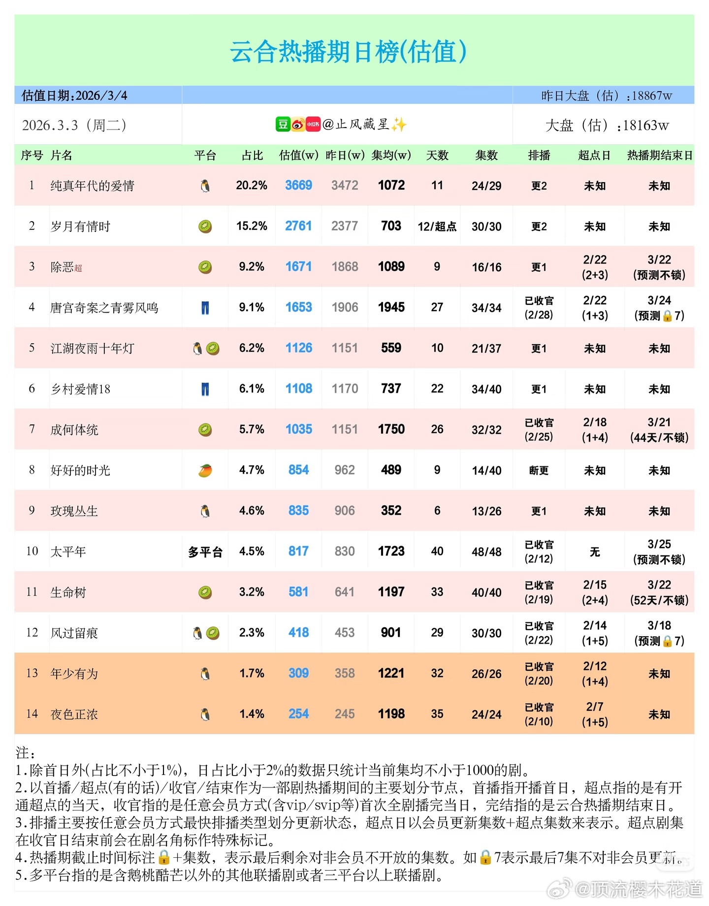 3月3日云合播放占比云合 VS酷云一片低迷,拿什么来拯救我们的长剧市场。