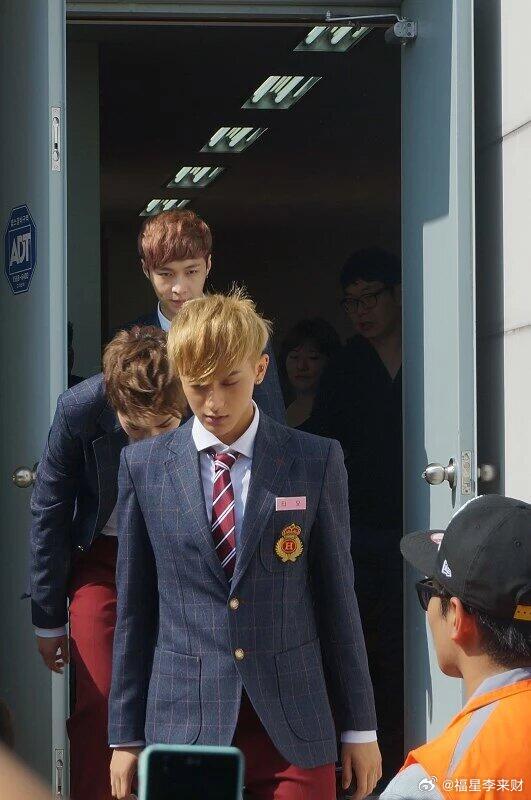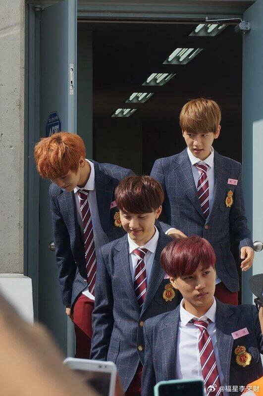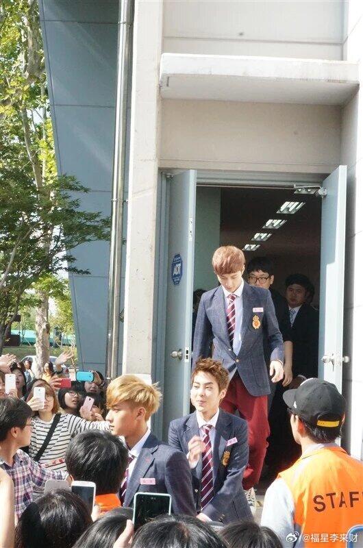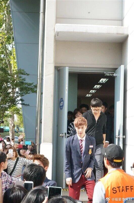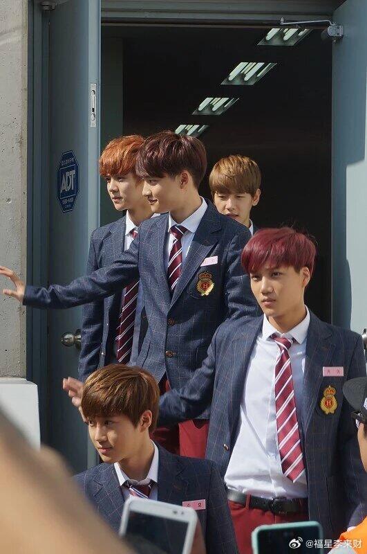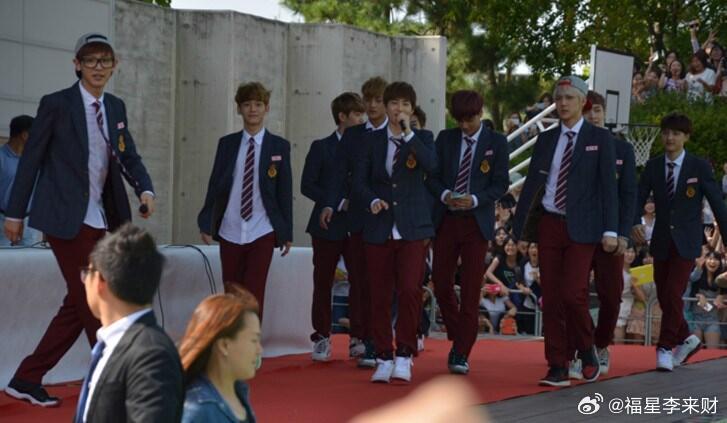 2013年偶遇EXO走路发现很多人在围观着几辆大巴车,然后就看到EXO从车上下来