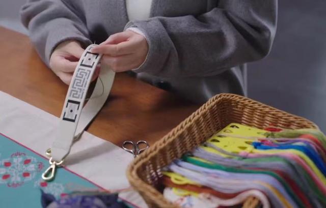 在设计阶段,郑晓蓉与品牌设计师频繁沟通,从图案比例到色彩搭配逐一推敲。最终呈现的联名单品涵盖包挂、肩带等日常配饰:萱草花与铃兰元素在撞色中呈现刚柔并济的美感,传统回纹被巧妙融入“E”字符号设计,与品牌标识形成呼应。东方寓意与国际时尚语言在细节中交汇,既保留非遗气质,又兼具现代审美。