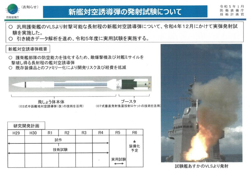 【2】03式中SAM(改)能力提升“新规研究开发项目” —— 预计2028年完成,在进行软件改修的同时,还将“扩大防御范围”。这意味着,有可能采用射程比现有型号更远的新型拦截弹。【图6】现役03式中SAM(改)曾通过加装07式垂直发射鱼雷火箭助推器实现增加射程,发展出“新型舰对空诱导弹”。如果该技术改为陆基版本应用,那么“扩大防护范围”的目标将可以较为容易地实现。弹道导弹、高超音速导弹和隐身战机的能力。每天认识一件兵器烽火问鼎计划