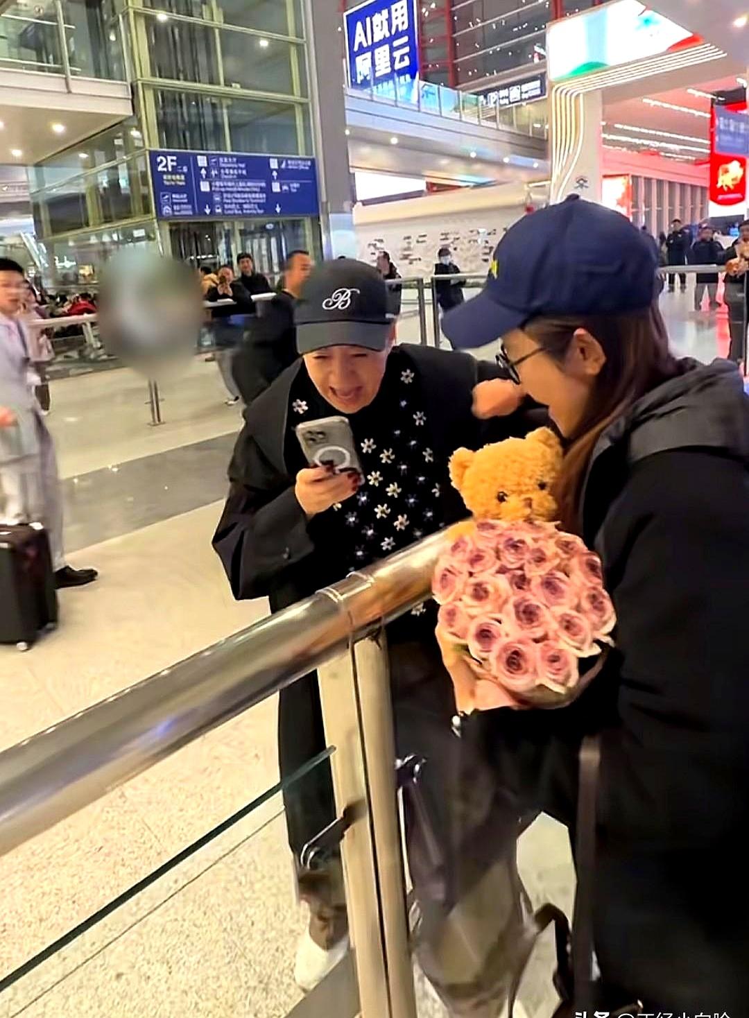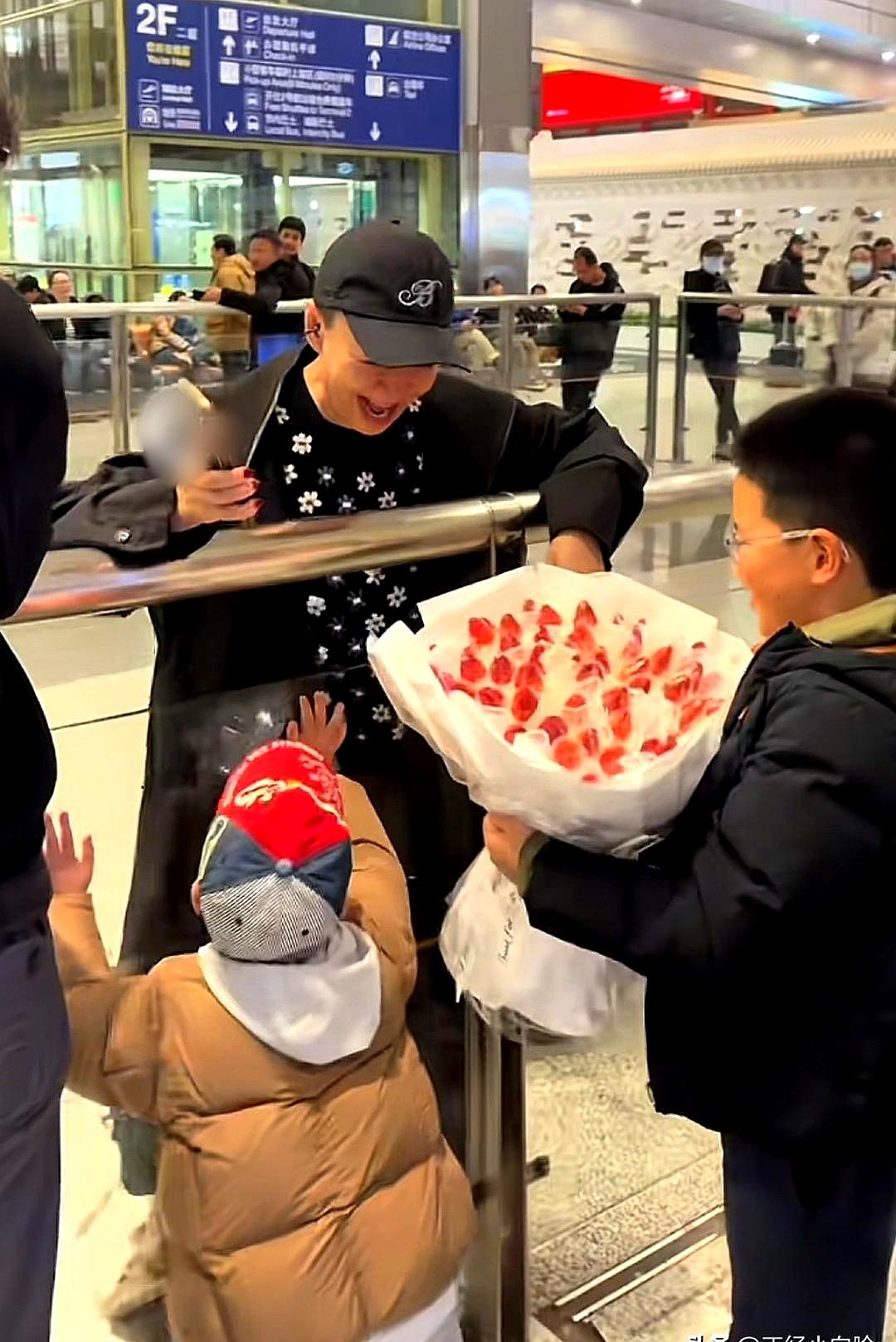 65岁的宋丹丹,在首都机场直接尖叫、原地蹦了起来! 她刚从拉斯维加斯度假回来,推着行李一出关,眼睛忽然就扫到了两个小孙子。 孩子们手里举着一个超特别的花束——用丹东草莓扎的,上面还点缀着一闪一闪的小彩灯! 这一下可把宋丹丹激动坏了,掏出手机大喊“奶奶好感动哦”,还非让孙子们把接机场景重新演一遍,方便她录下来。 旁边的儿媳妇王博谷捧着粉紫色玫瑰,笑着看祖孙闹腾,等拍完了,婆媳俩直接就是一个大大的贴脸拥抱,亲密得不行。 现场视频传得飞快,5小时就干了15万点赞。 网友都说她走路带风,精神头十足,这状态哪儿像一个65岁的人?