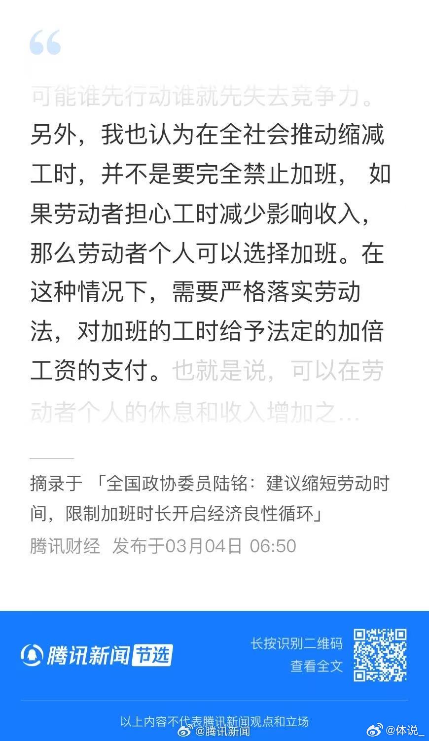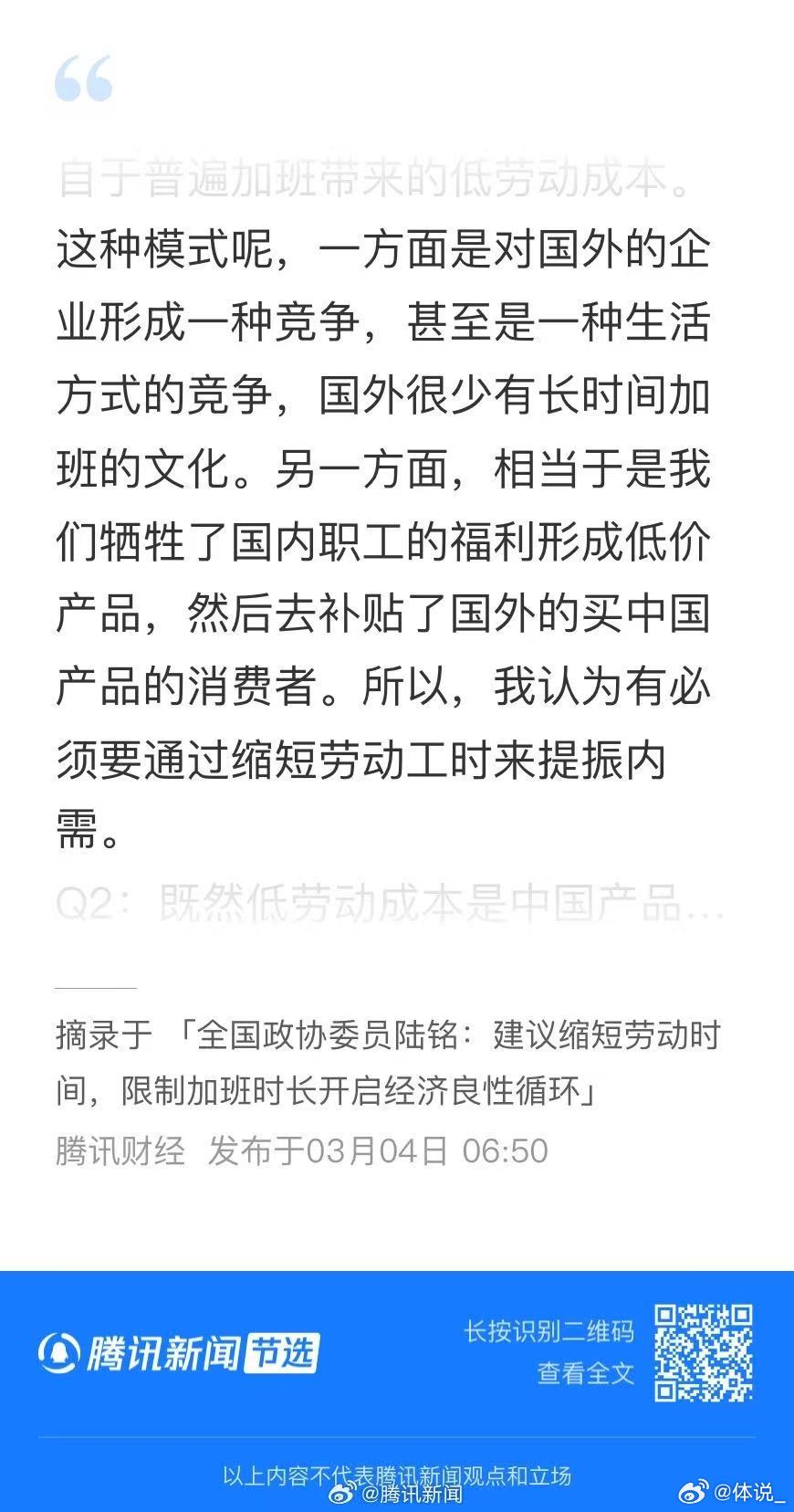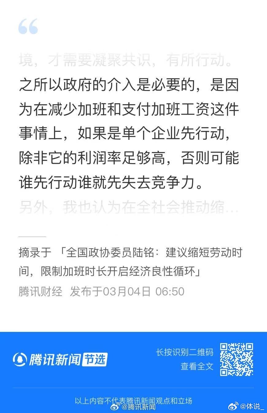 专家说加班是牺牲福利补贴国外消费者 政协委员呼吁要保证加班工资拒绝用福利换低价,拒绝用健康换产量,规范加班、保障薪酬,让中国劳动者共享发展成果。