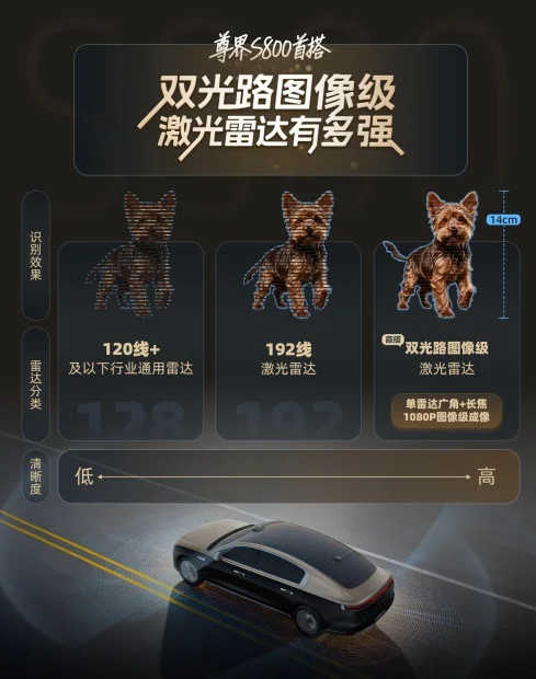 尊界S800这次真的把智能豪华卷到了新高度了,上来就是王炸:全球首发新一代双光路图像级激光雷达,量产线数最高,成像分辨率提升4倍,14cm微小物体远距识别无压力,已然做到安全基座的代际领先。华为新激光雷达可远距识别14cm物体更难得的是,技术硬核之外,日常体验也极致细腻:二排挥手即可关闭对侧车门,抱娃上车终于不用狼狈转身;双人星闪手表控车、智能休憩模式一键成床,连小艺都学会了方言(5月OTA),每个细节都在重新定义“豪华仪式感”。从顶级智驾到贴心场景,尊界S800以硬核技术与人文关怀,持续定义中国超豪华智能出行标杆。华为新激光雷达成像分辨率提升4倍