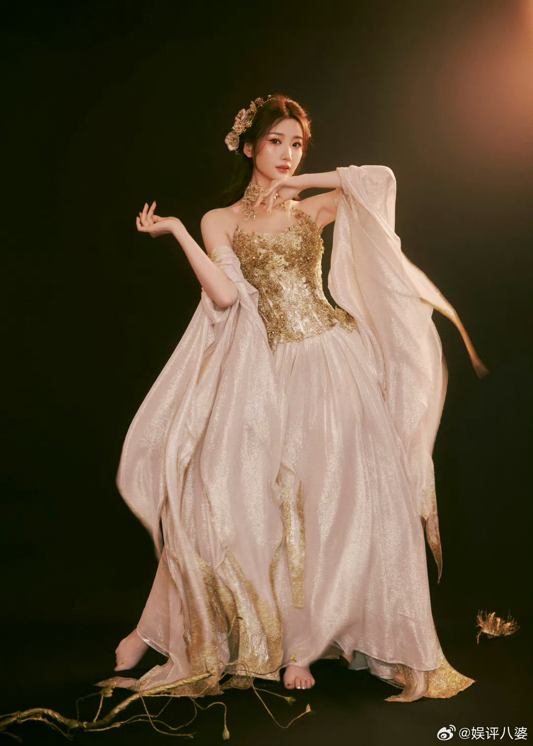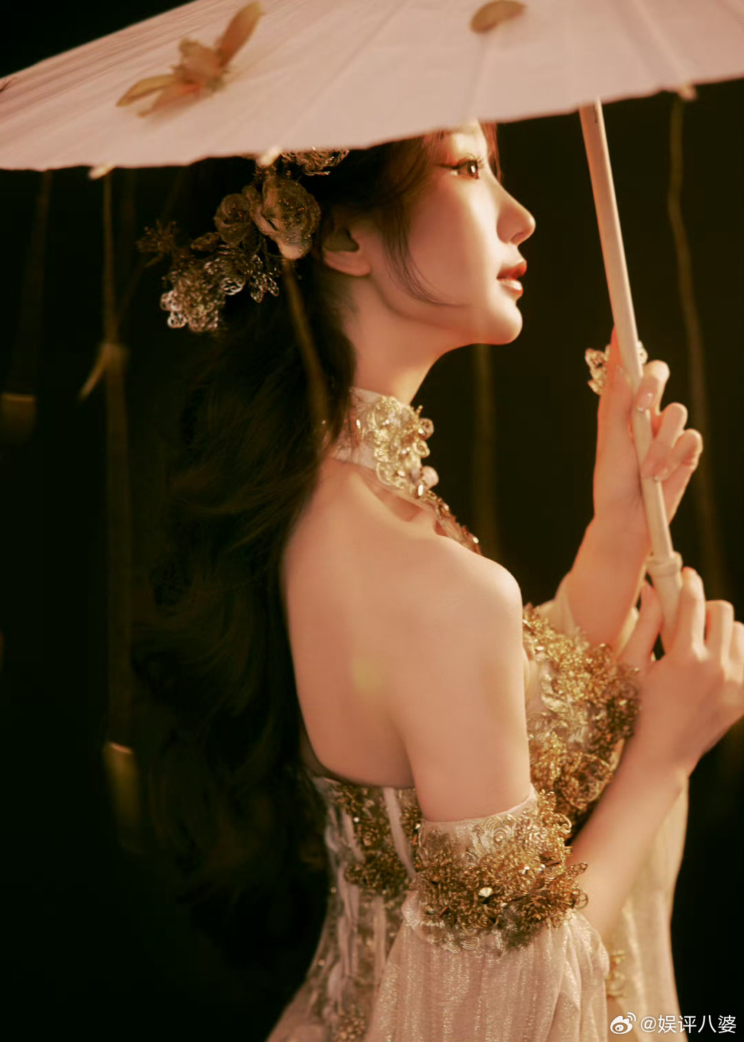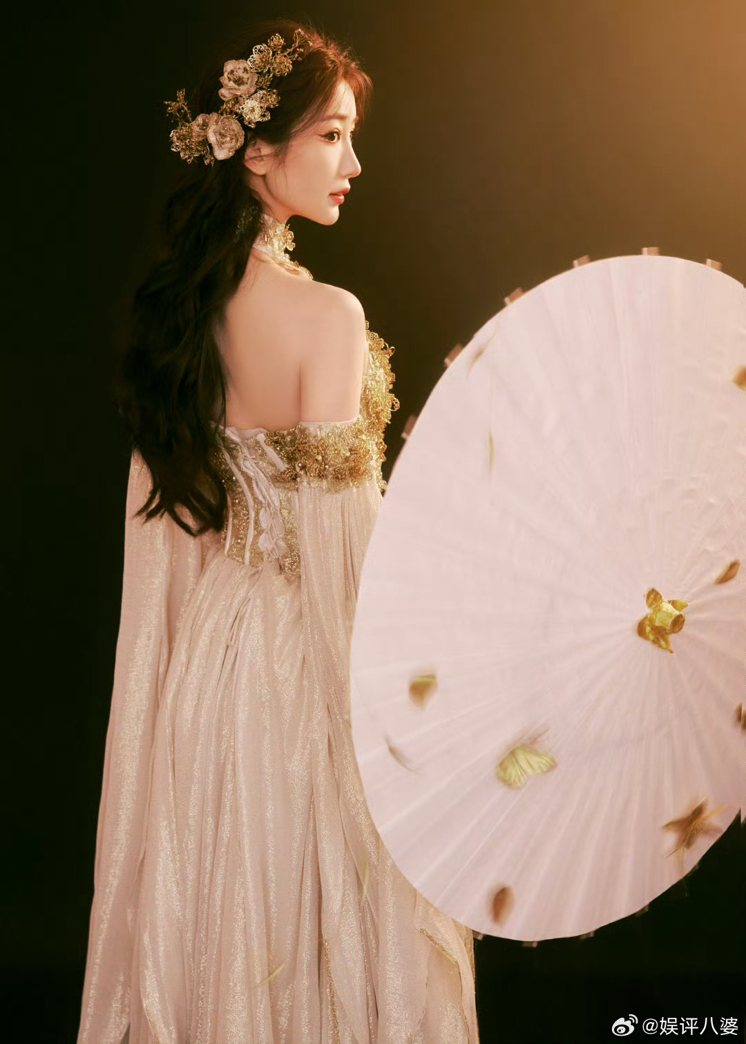 被毛晓彤的古风伞舞狠狠拿捏啦😍 金白国风裙搭配花饰,手持油纸伞轻盈旋转,每一帧都美若天仙,这美貌简直要溢出屏幕啦! 毛晓彤
