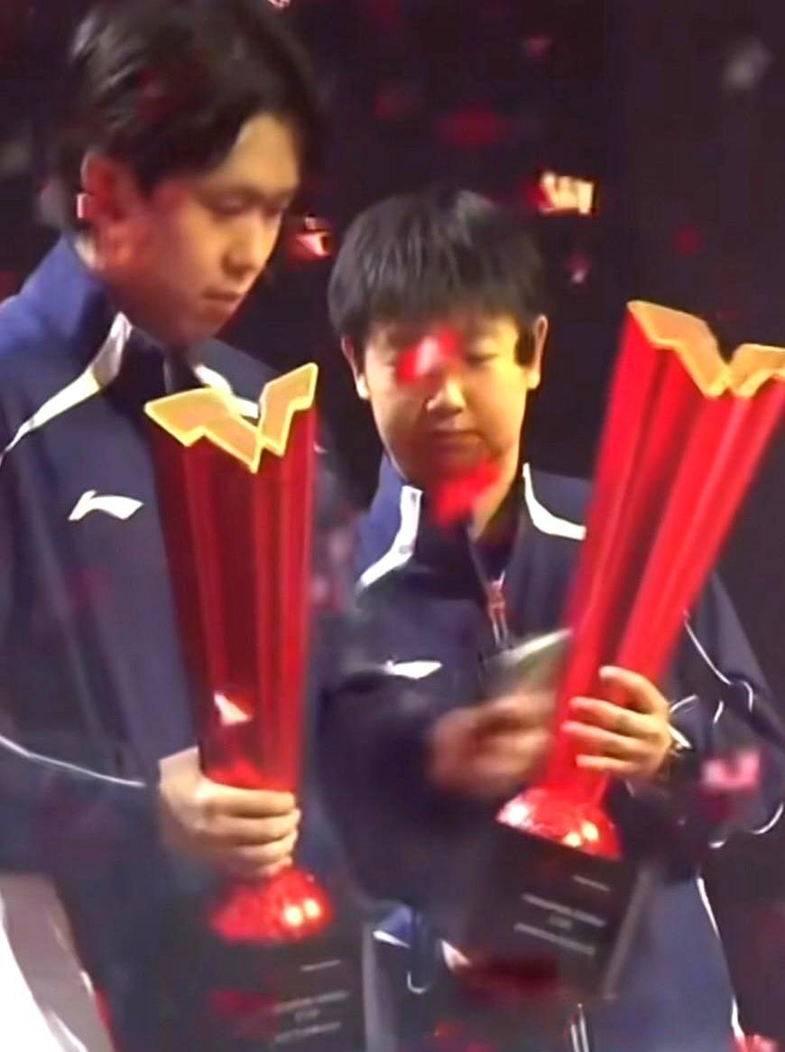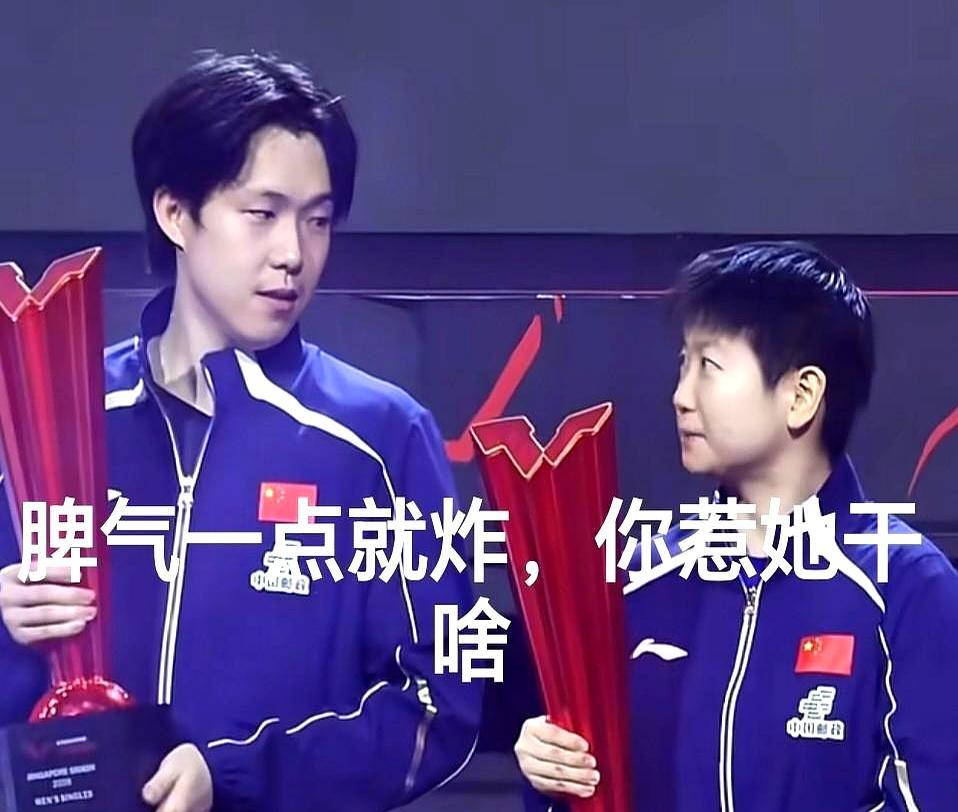 9年了,他俩庆祝夺冠的方式,从拥抱变成了“吵架”。 上次赢球,孙颖莎对着王楚钦梗着脖子瞪眼,王楚钦也毫不客气地顶回去。不了解的以为下一秒要打起来,了解的才知道,这是他们之间最高级别的信任——只有对最亲的人,才敢把最真实、最不设防的一面甩出来。 你看颁奖后台,前一秒还奶凶互怼,后一秒捧起奖杯,两个人眼神一碰,瞬间切换成星星眼。王楚钦会把手机递过去:“你来拍。”孙颖莎就自然地接过来,所有不确定都在这一递一接里消融。 顶峰相见的意义,从来不是谁征服了谁。而是我们各自为王,又并肩成双,让全世界都看见,有一种陪伴叫孙颖莎和王楚钦。