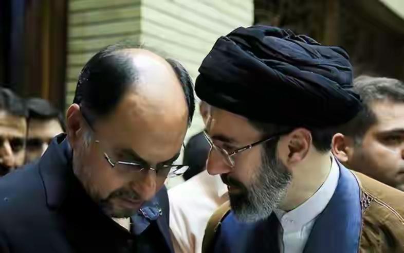 穆杰塔巴和他父亲都戴着同款帽子,不知他们身旁地中海头型男子有无觉得他们这样的装扮