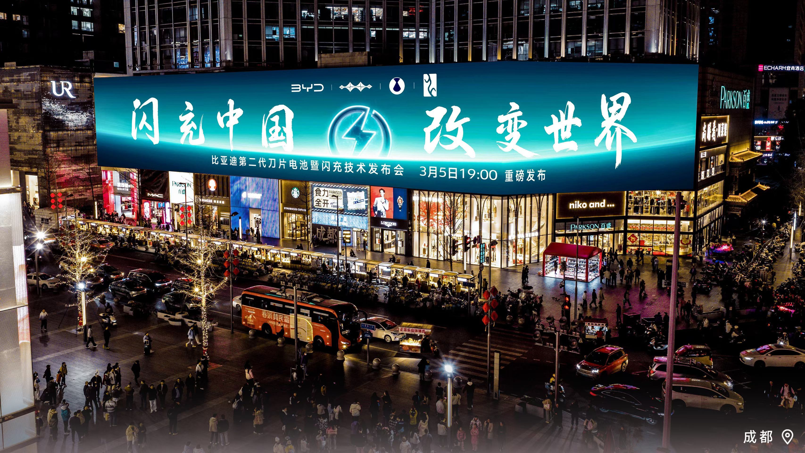 这一次,比亚迪的决心足以撬动地球公转自转闪充中国,改变世界,比亚迪第二代刀片电池及闪充技术,点亮全国多城CBD地标大屏。3月5日19:00,一起闪充吧!百家车坛