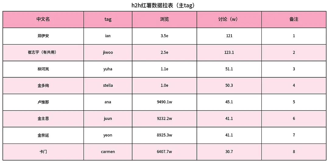 Hearts2Hearts成员🍠数据拉表JIWOO、CARMEN、YUHA、STELLA、JUUN、A-NA、IAN、YE-ON