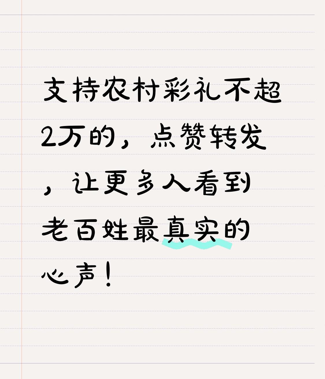 全网点赞!委员建议:农村彩礼不超2万元,彻底刹住天价歪风! 所有农村小伙、父母、准备结婚的朋友,这条视频一定要看完!这绝对是今年最接地气、最得民心的一条建议! 最近,全国政协委员重磅建议:大力推广农村彩礼不超过2万元,坚决抵制天价彩礼、大操大办、盲目攀比,让婚姻回归爱情本质,不让彩礼成为拦在幸福门前的大山! 消息一出,全网直接炸了!评论区全是叫好声:“早就该管了!”“救了无数农村家庭!”“这才是真正为老百姓说话!” 为什么这条建议能火遍全网?因为它戳中了无数普通家庭的痛处。 这些年,农村彩礼越炒越高,十几万、二十几万成了常态,有的地方甚至喊出“一动不动、万紫千红一片绿”,买车买房加存款,少一样都不行。 多少相爱的人,因为拿不出天价彩礼被迫分手; 多少老实本分的农村小伙,因为彩礼愁得睡不着觉; 多少父母为了给儿子娶媳妇,掏空一辈子积蓄,甚至背上沉重外债,一辈子抬不起头。 本来结婚是喜事,最后却变成了卖女儿、拼家底、比面子,完全变了味。 真正的转折点来了! 这次委员建议不是空喊口号,而是直击要害: 明确提倡彩礼不超2万元,村里带头监督、红白理事会把关、党员干部先行示范,谁也不能带头攀比、漫天要价。 不是不让给彩礼,而是不让彩礼变成负担;不是不尊重习俗,而是把陋习变成良俗。 嫁女儿是为了幸福,不是为了卖钱;娶媳妇是为了过日子,不是为了倾家荡产。 简简单单、干干净净的婚姻,才能走得长久。 很多人说:养女儿不容易,要点钱怎么了? 其实真正的幸福,从来不是靠彩礼堆出来的。 小两口好好奋斗、互敬互爱、日子越过越红火,比多少彩礼都珍贵。 天价彩礼,拆散的是爱情,压垮的是家庭,伤透的是人心。 2万以内的彩礼,是心意,是尊重,是体面,更是刚刚好的幸福。 真心希望这项建议早日落地,让农村不再因婚致贫、不再因彩礼流泪,让每一对真心相爱的人,都能轻轻松松走进婚姻,踏踏实实过好日子。 支持农村彩礼不超2万的,点赞转发,让更多人看到老百姓最真实的心声!