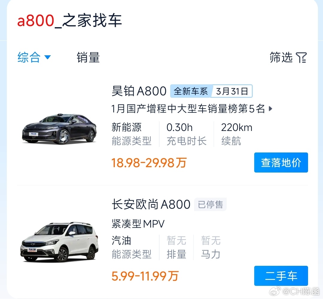 刚有朋友给我发了个价格图,说A800上市了!我的第一反应是,欧尚A800还有新款???哦……原来是昊铂A800起名之前就不查查重吗?可能是因为先入为主的原因,叫这个名字卖20万,给我的感觉就像遇到一位奢侈品销售,他不叫Alan Adam,而叫铁柱昊铂A800创史上最高最长雪地跳台极限爬坡纪录