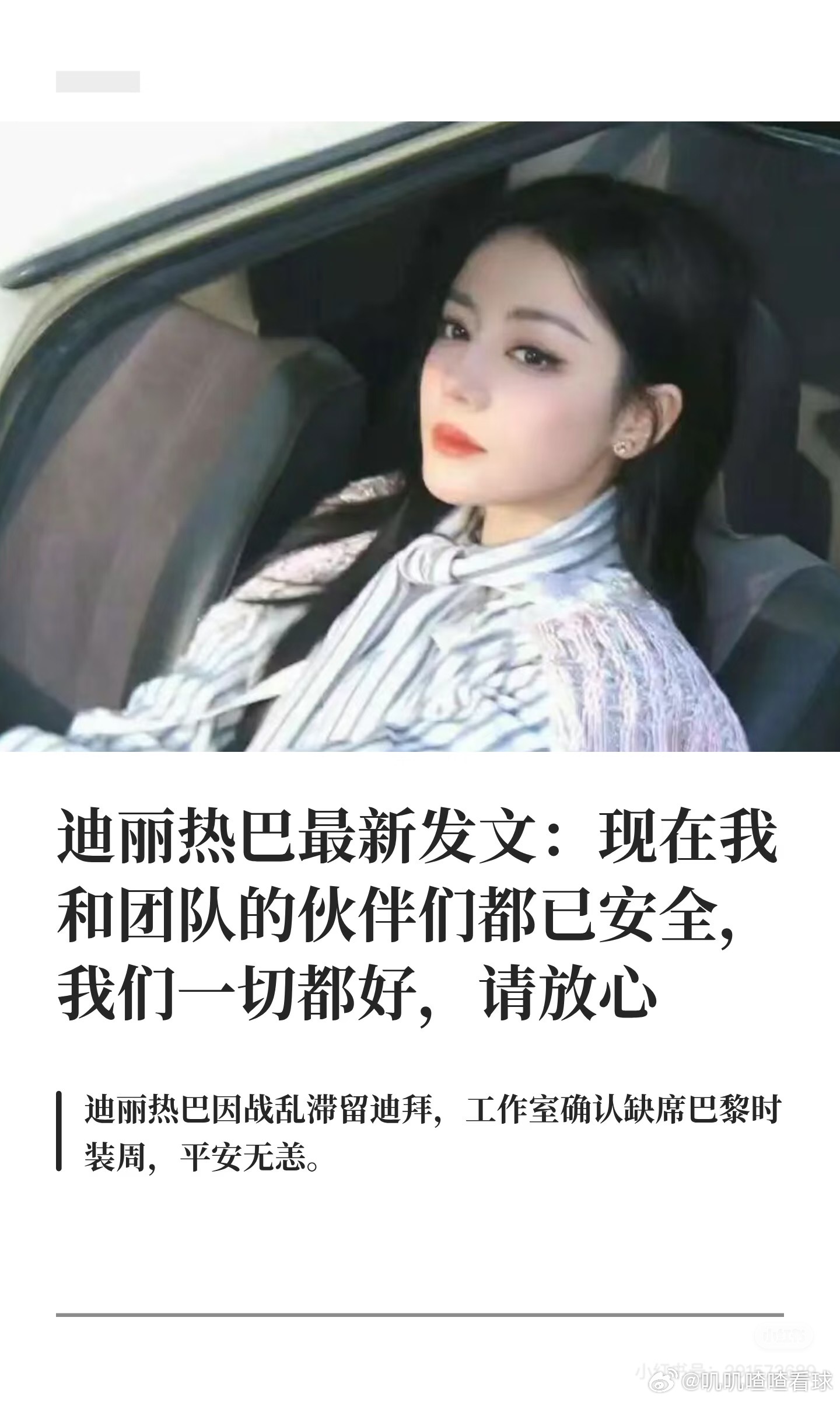 迪丽热巴报平安了!3月4日晚,迪丽热巴在个人账号给大家报平安:和大家报个平安,现在我和团队的伙伴们都已安全,各方面的事项公司也已经处理安排好,我们一切都好,请放心。很抱歉让大家担心了,感谢大家对我的关心,希望大家都能平平安安的。
