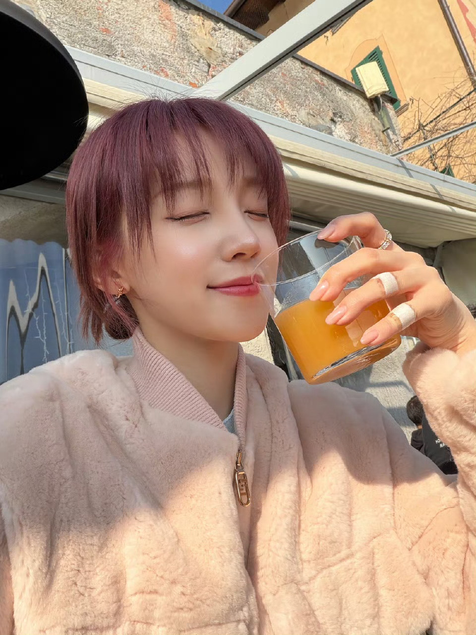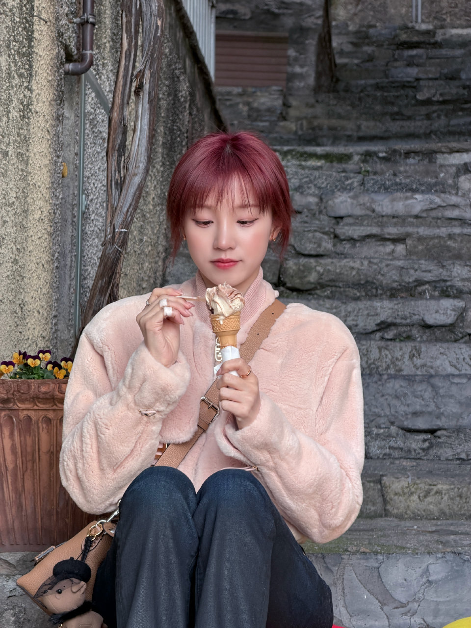 宋雨琦粉发旅行随拍宋雨琦旅行明信片 旅行碎片掉落!石梯上吃冰淇淋、湖边喝果汁也太萌了,松弛感拉满~