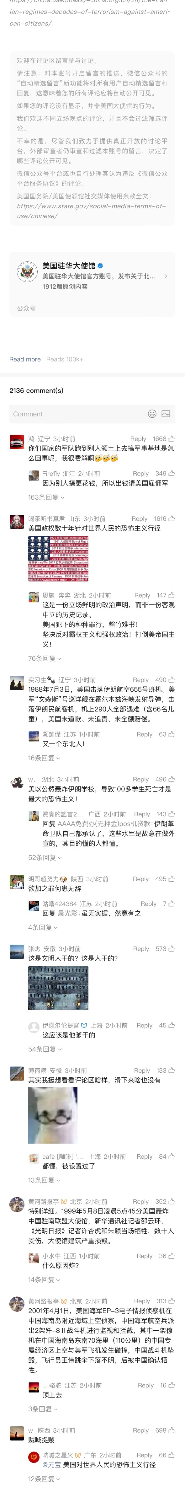 美国驻华大使馆wx号的评论区… 居然讨论起来了…