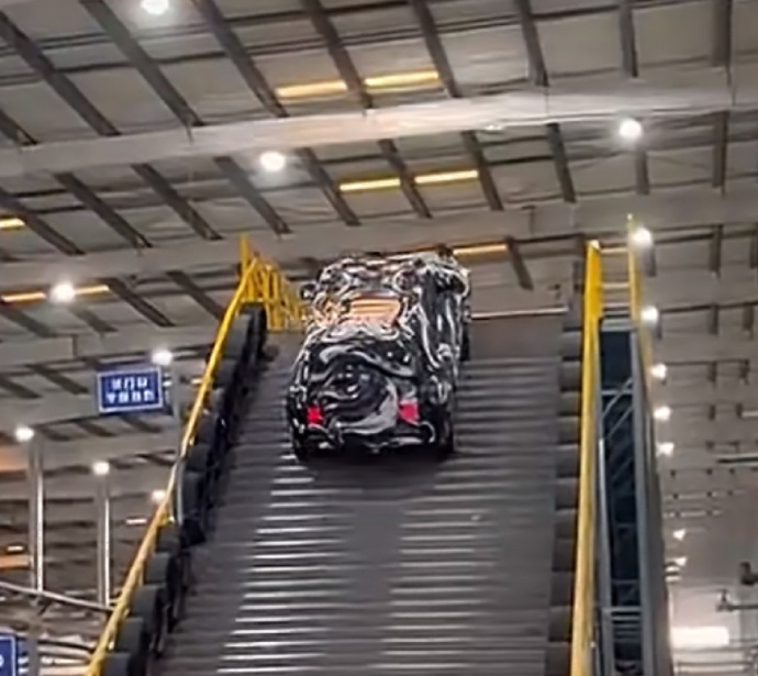 比亚迪把天门山天梯搬进了厂房,其实,以比亚迪的技术,爬这种坡,倒不算是什么很大的难题。倒是视频里的测试车,虽然贴满了伪装膜,但也有细心媒体发现,伪装车的车尾小书包虽然是圆形,但很可能是U8八边形备胎罩贴了伪装,因为差不多大的豹8是星环造型,贴不成这么规整的圆形。