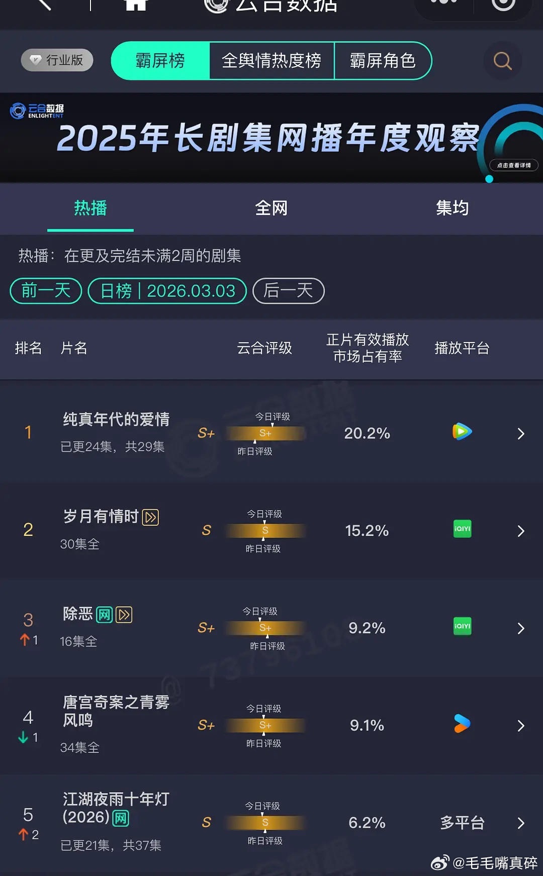 纯真年代的爱情大结局 不得不说陈飞宇真的挺牛的,第一部央八黄金档大男主剧就播出这么好的成绩!云合集均涨70,市场占有率破20%,鹅站内热度今年第一,全方面无死角,还证明了自己在不同赛道的观众缘,看好剧圈001!方穆扬费霓一起上大学 方穆扬喂费霓吃饭 磕到了