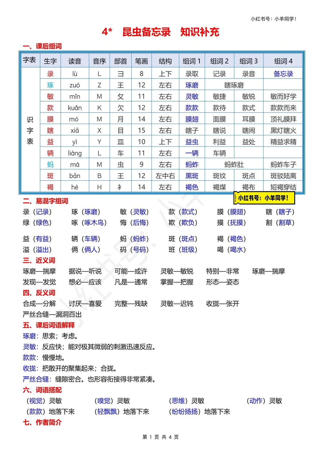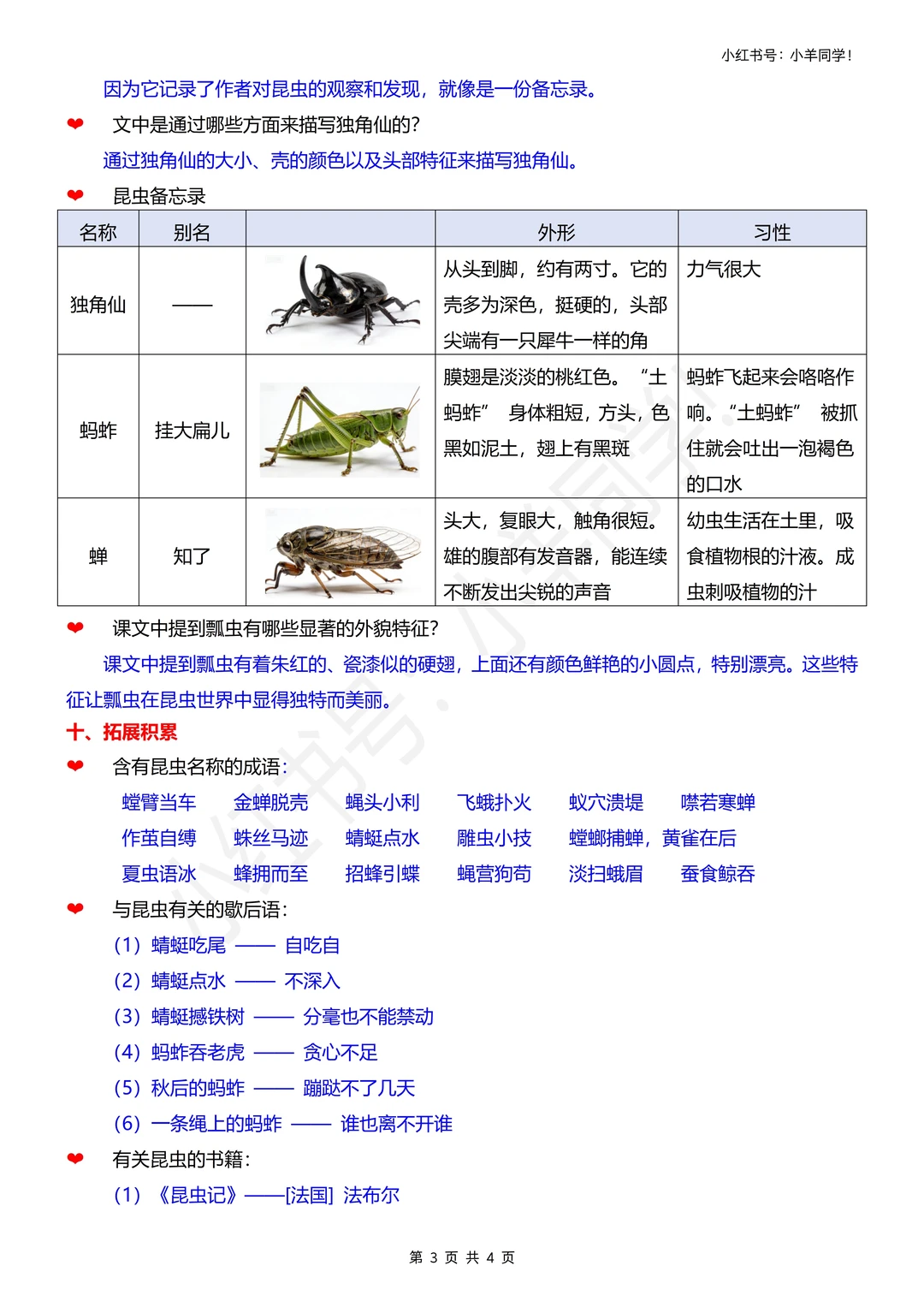 三年级宝子们,跟着这份目标学,《昆虫备忘录》轻松拿下✅