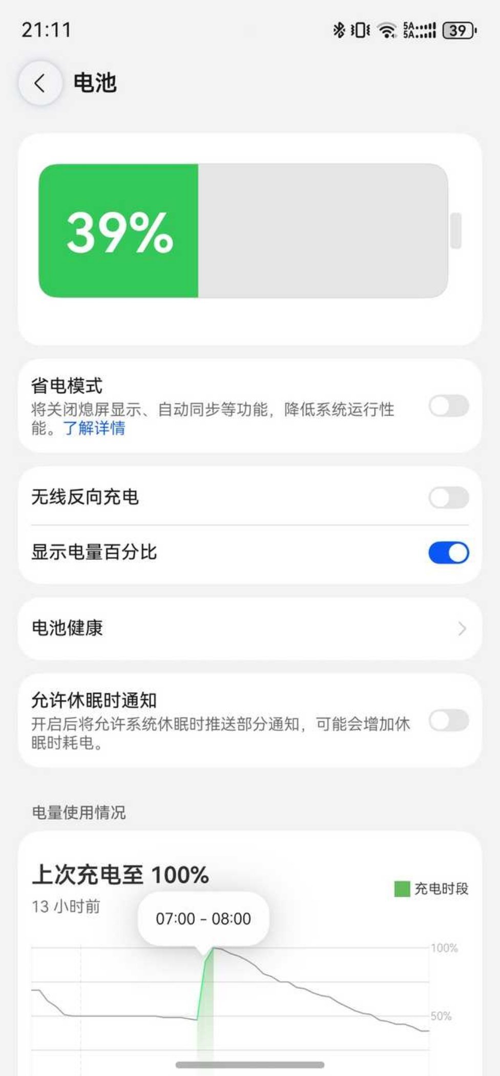 朋友用了一年多的华为Mate70Pro+从早上8点,日常中高强度用到晚上9点钟左右,依然剩余39%的电量。