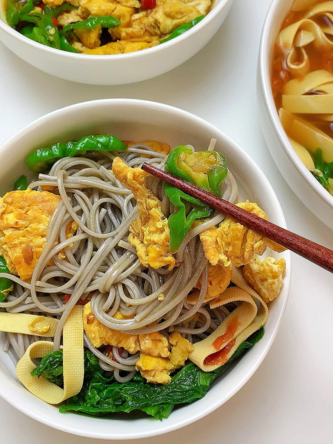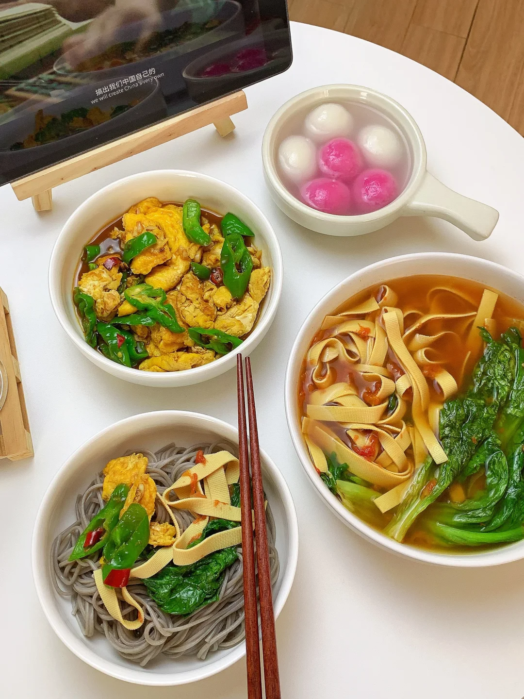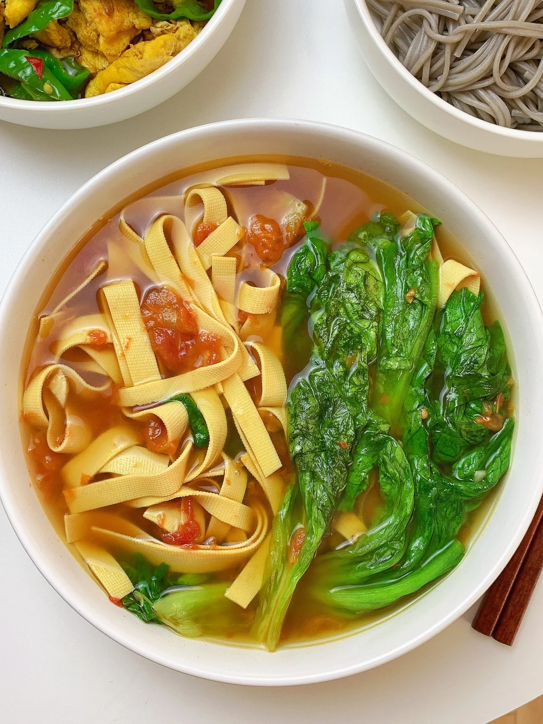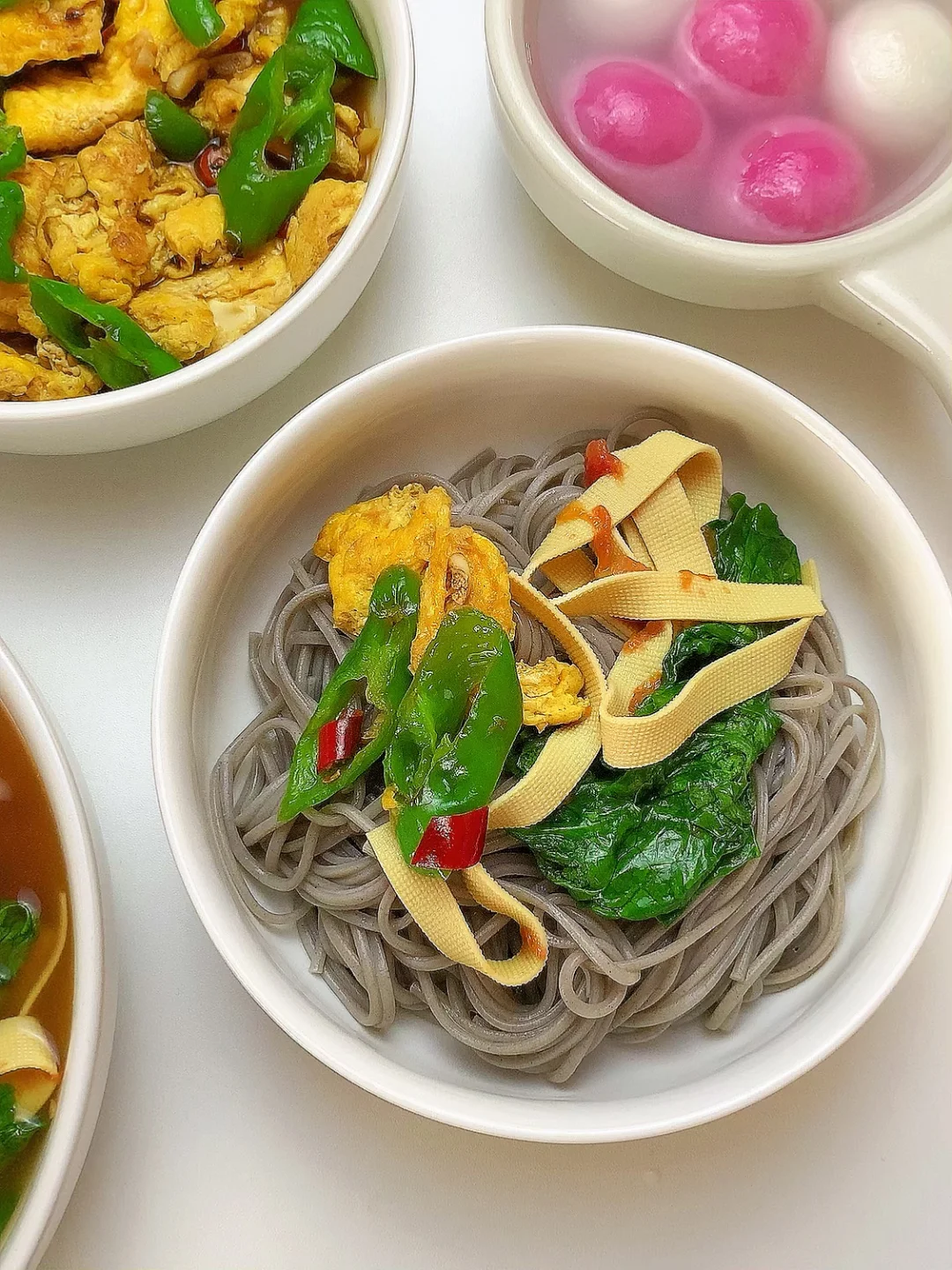 👩🏻🍳分享今日菜单(后附图文做法~) 番茄🍅豆皮生菜汤 青椒🫑炒鸡蛋 主食:荞麦面条 ~今天有元宵哦 ……………………………………………………………………………… 🛒食材清单: 鸡蛋 | 青椒🫑 | 生菜 | 豆皮 | 番茄炒蛋 | 荞麦面条 📝我的美食日记,一日三餐,拒绝外卖[偷笑R],坚持做饭的每一天,吃简单干净的饭菜~ ₍˄·͈༝·͈˄*₎◞ ̑̑ ✨✨好好吃饭,生活化减脂~
