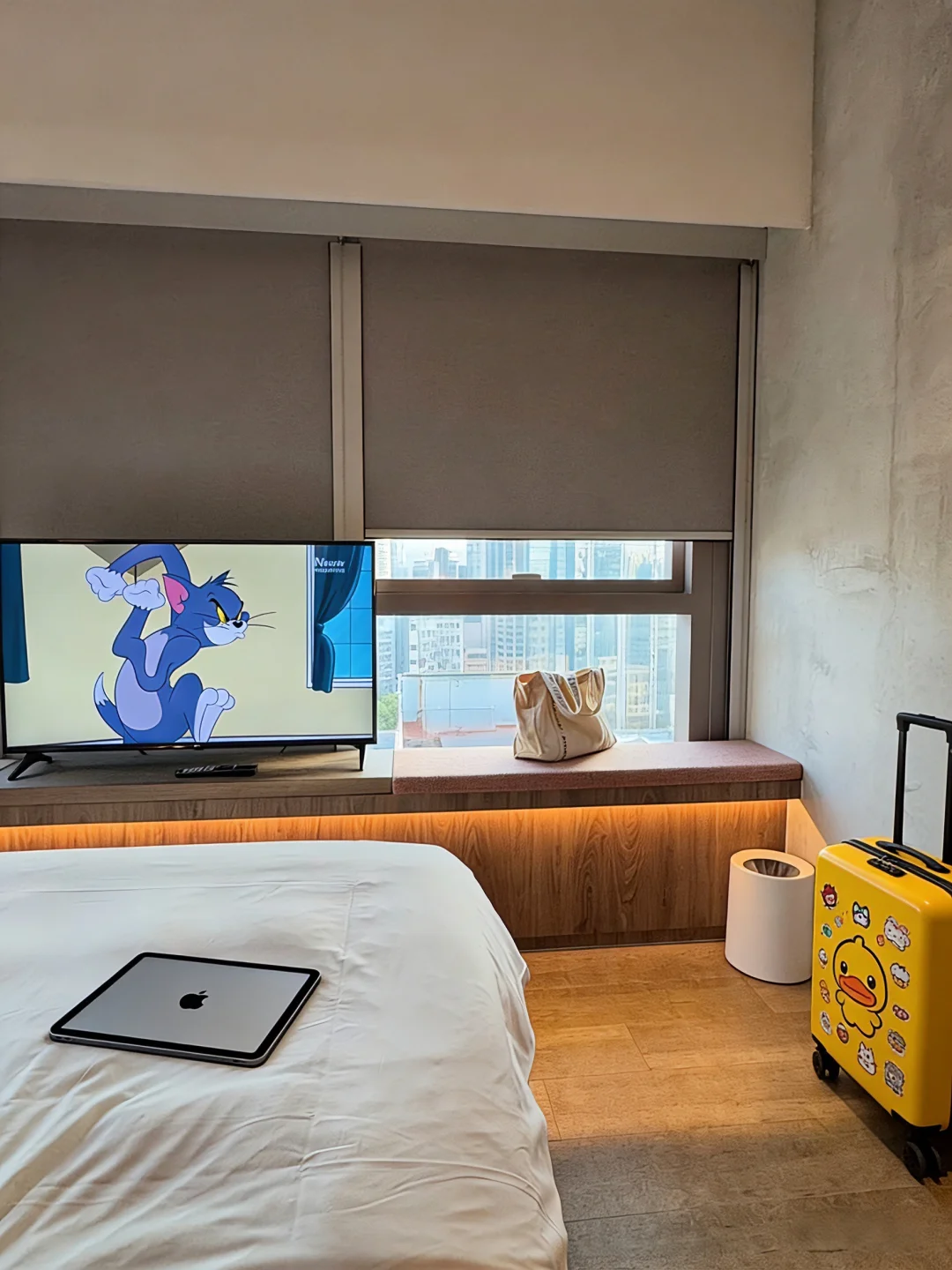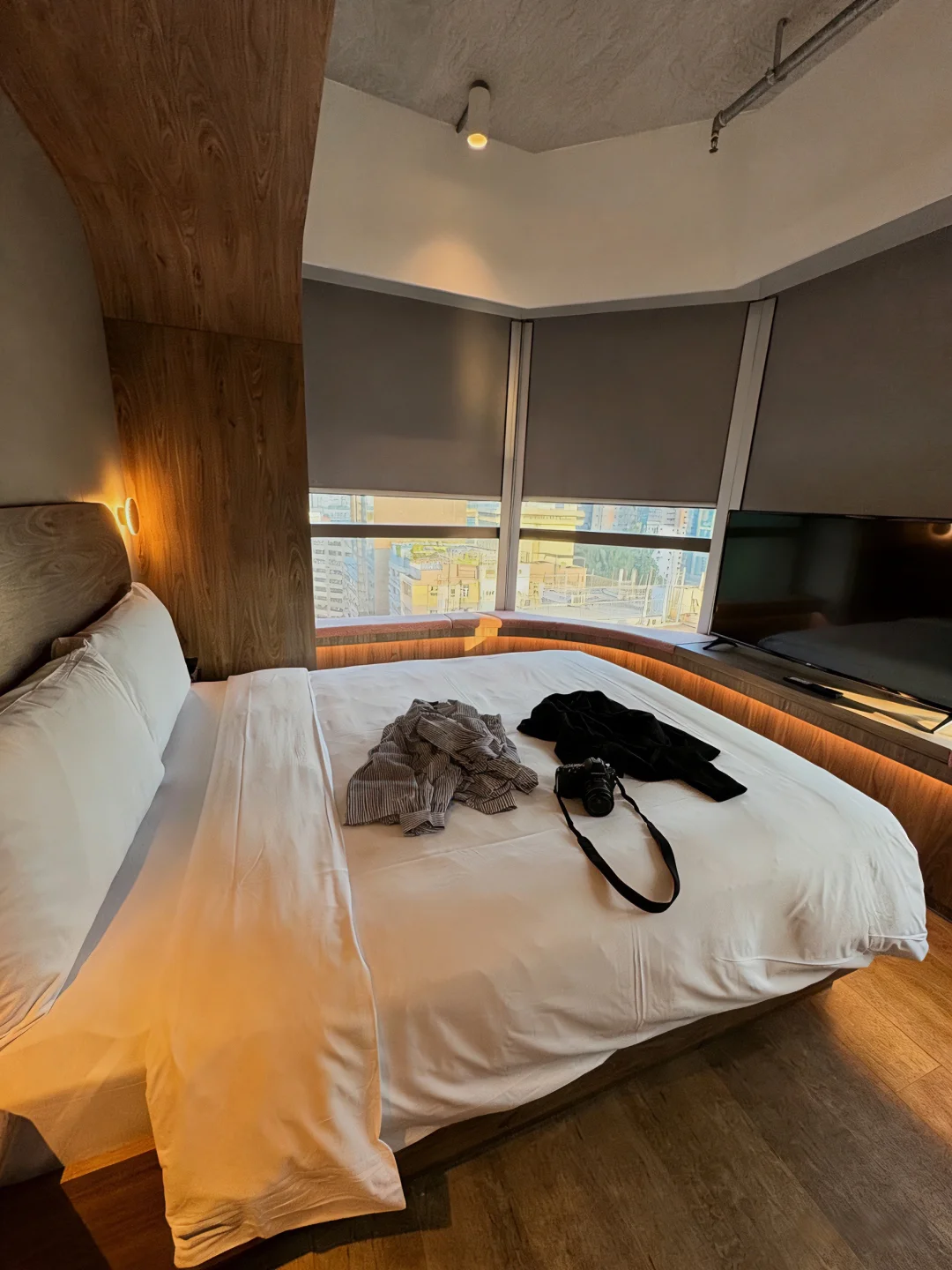 大大的窗户,在香港住宿这里算是空间大的了!除了能看到香港城景,还可看香港城景,隐约能看到大海🌊
