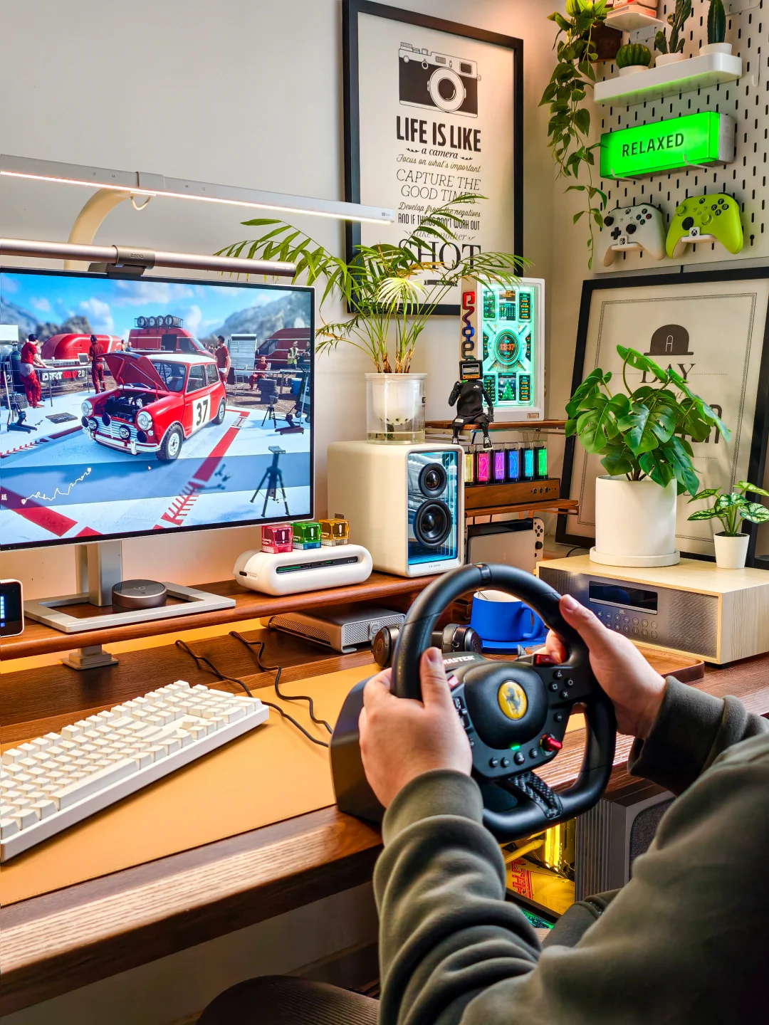 以前玩赛车游戏用键盘,总觉得少了点灵魂,直到用上图马思特T98,才懂什么叫操控体验,脚踏板还能还原刹车油门,转弯的顺畅以及丝滑的感觉,仿佛自己正坐在驾驶位上!