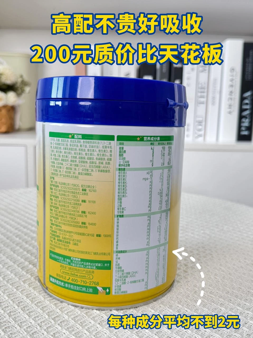 它还升级为了A2奶源,主打的就是好消化、好吸收,配方里有新一代结构脂OPO、小分子水解乳清蛋白,还有GOS益生元和5种HMOs,都是很贴合宝宝娇嫩肚肚的营养。