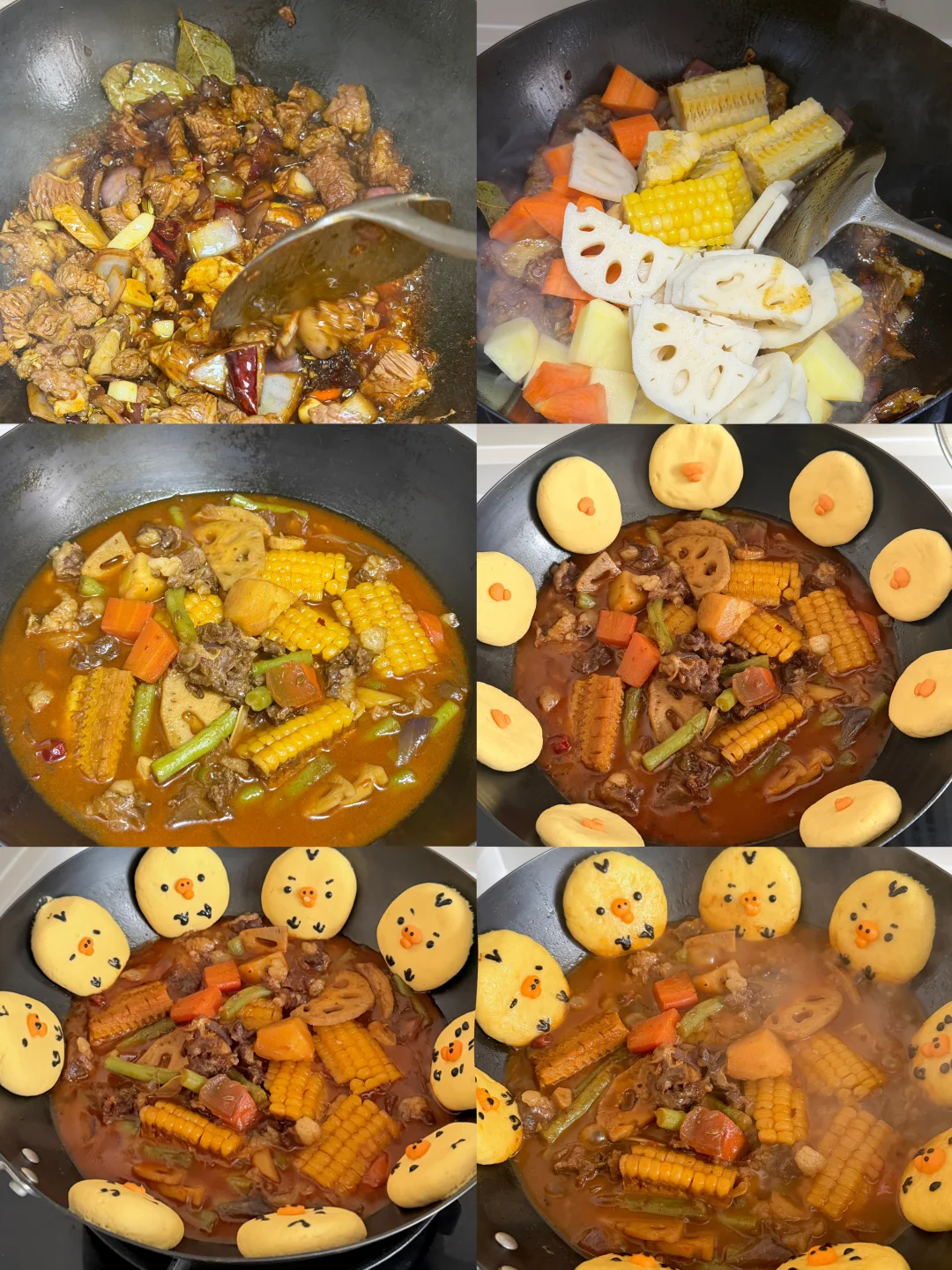 1️⃣热油下锅,爆香所有大料,加入牛肉筋翻炒,再加入两勺黄豆酱,一勺生抽,一勺老抽,一勺蚝油,火锅底料,炖煮40分钟