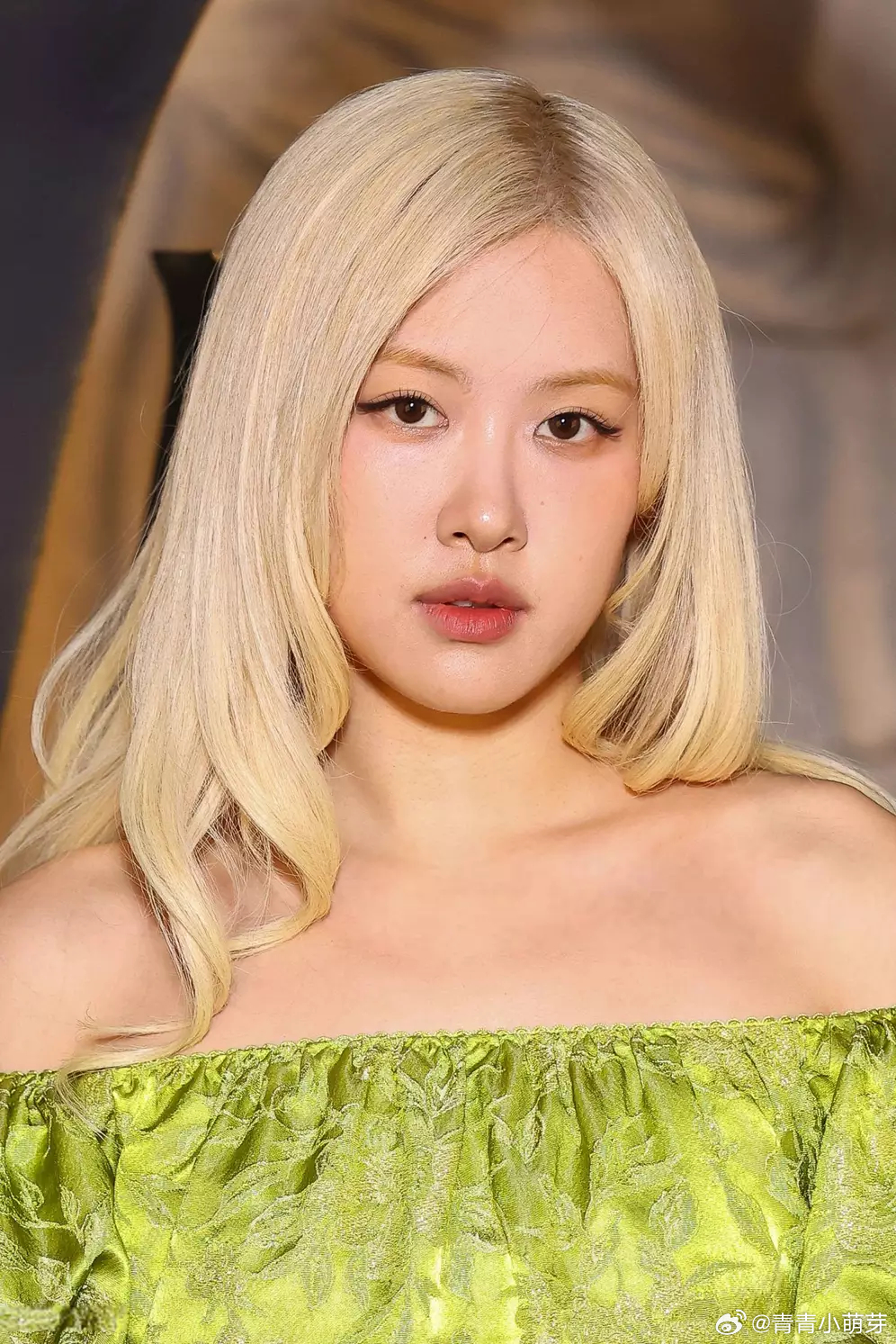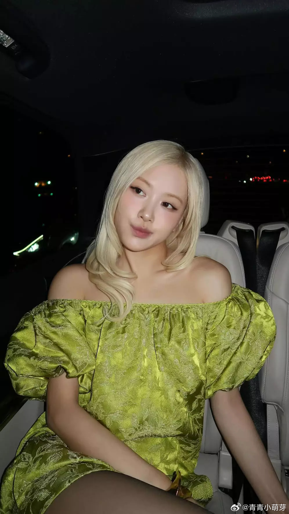 青青娱乐朴彩英穿一字肩刺绣绿裙精致贵气 金发配黑丝又甜又辣